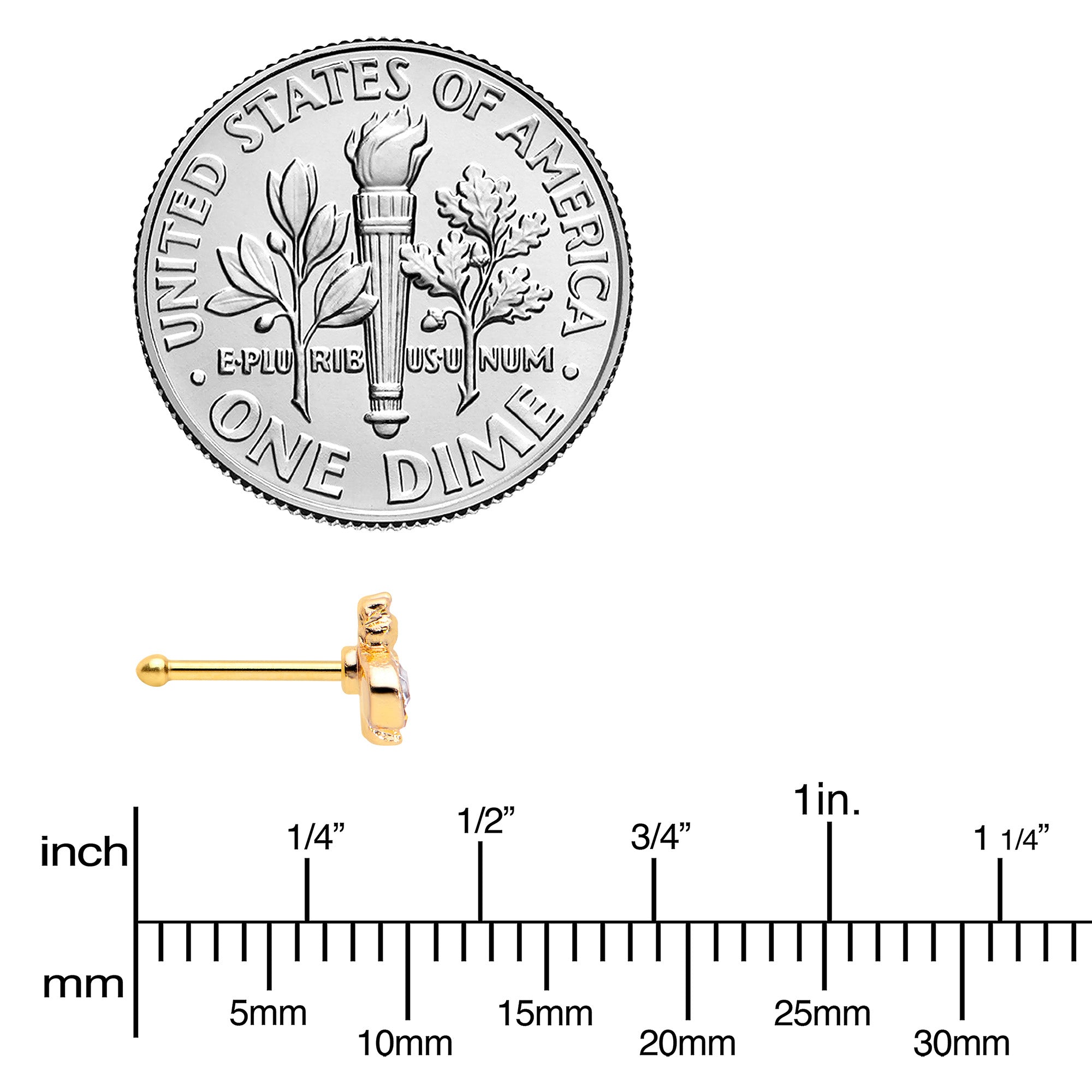 Get ready to catch the fashion bug with this stylish 20 gauge nostril ring. It is made with a 6mm gold tone PVD over 316L surgical grade stainless steel straight post. It features an insect charm, with the wings set with clear gems. The insect also features a yellow gem set in the body for added color and style. Don't let boring jewelry bug you when you're rocking this stylish nose piercing ring.