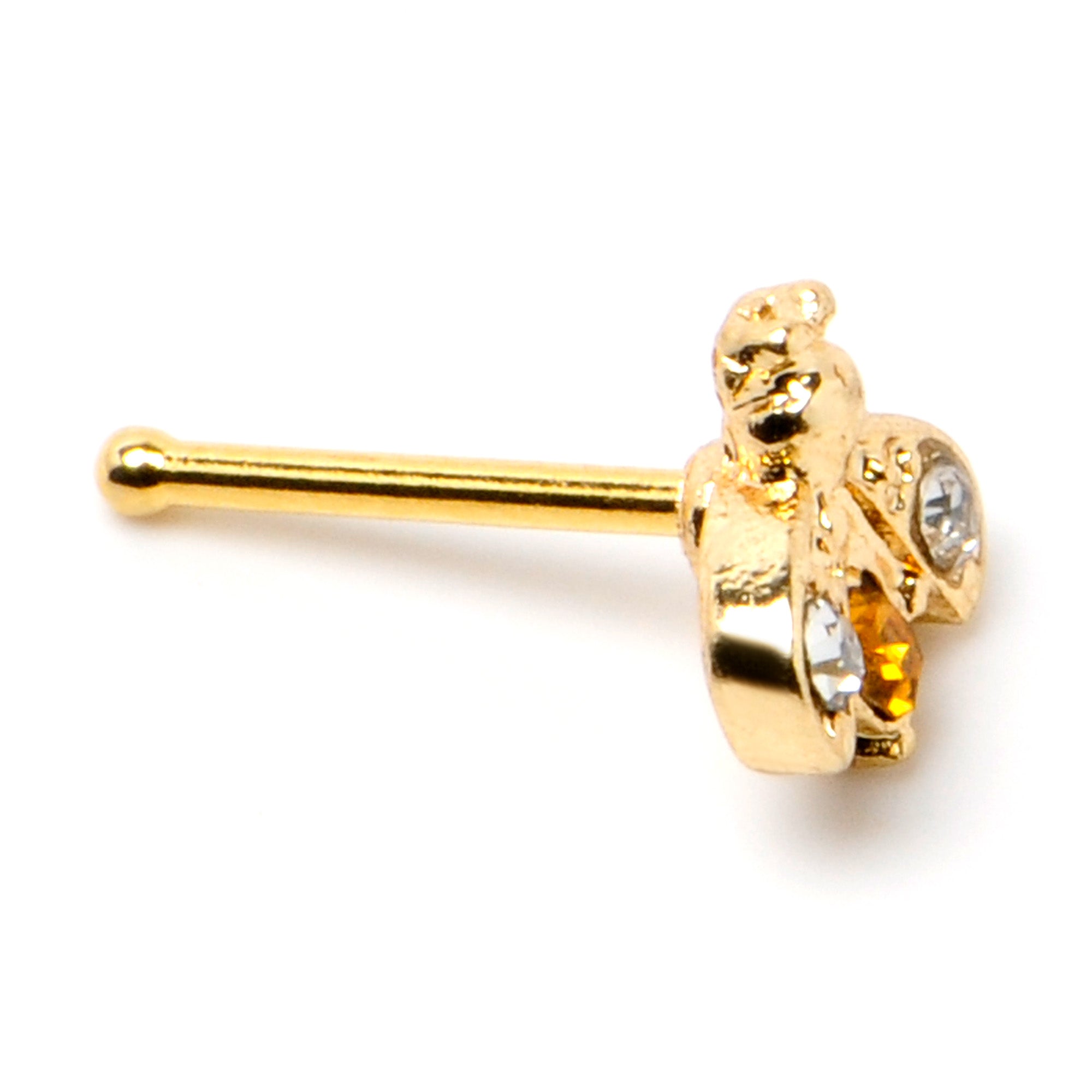 20G 1/4 Yellow Gem Gold Tone Fashion Bug Nose Bone