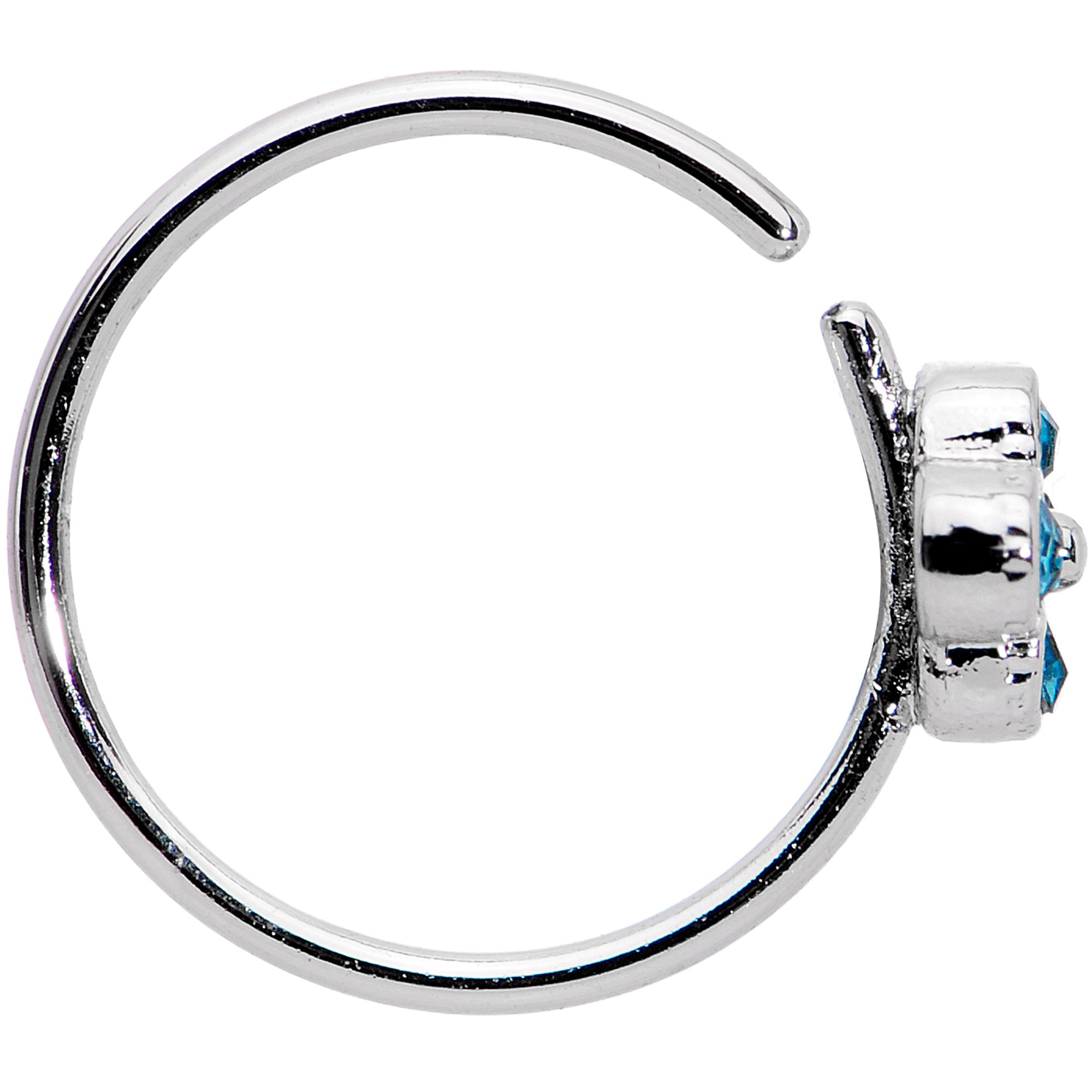 If you're into simple and easy to use universal jewelry this pretty 20 gauge nostril ring is right up your alley. Made with an adjustable 10mm durable surgical grade stainless steel circular ring, this nose hoop is set with a blue gem star flower and features ends that can be twisted open and then twisted shut again to easily to fit into your nose piercing. This universal body jewelry can be used for multiple piercings including your nostril, cartilage, or any other place that is a perfect fit for you!