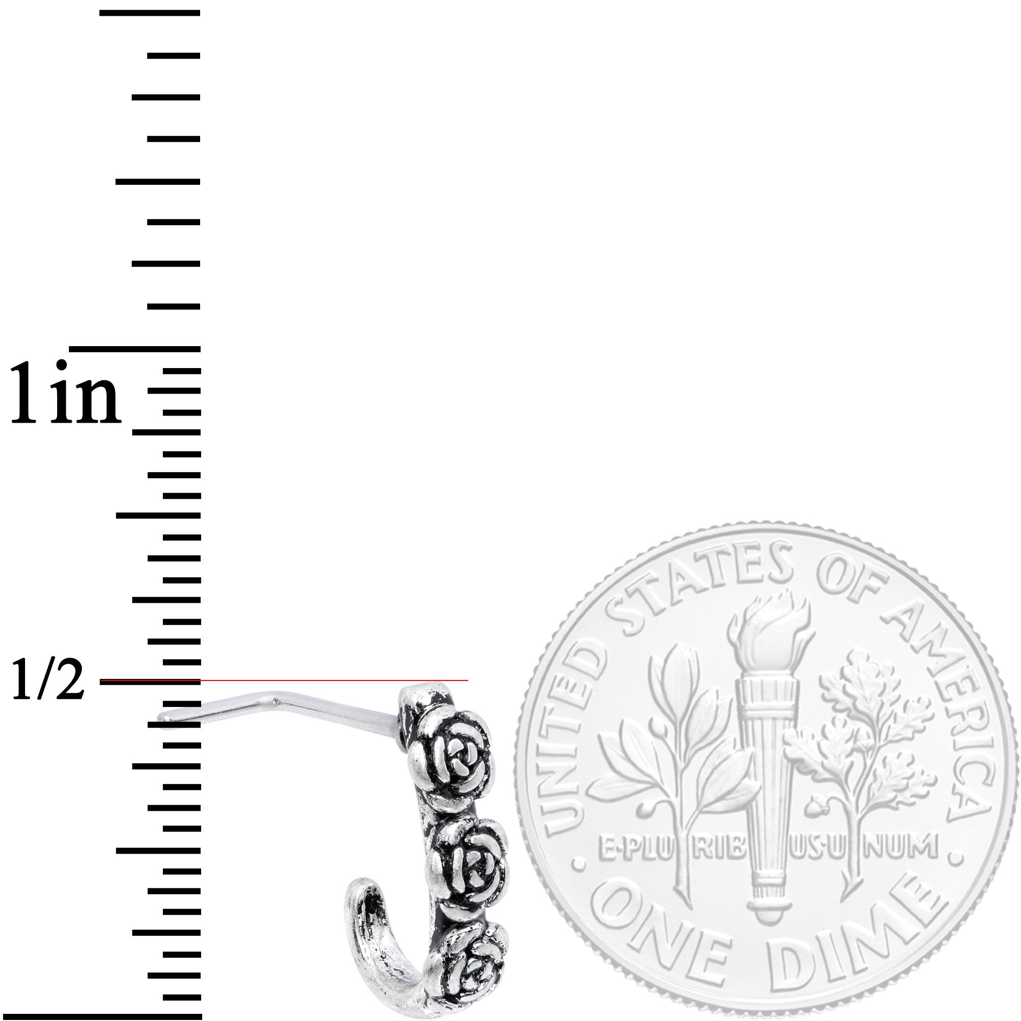 20 Gauge 3/16" Ring of Roses Faux Hoop L Shaped Nose Ring