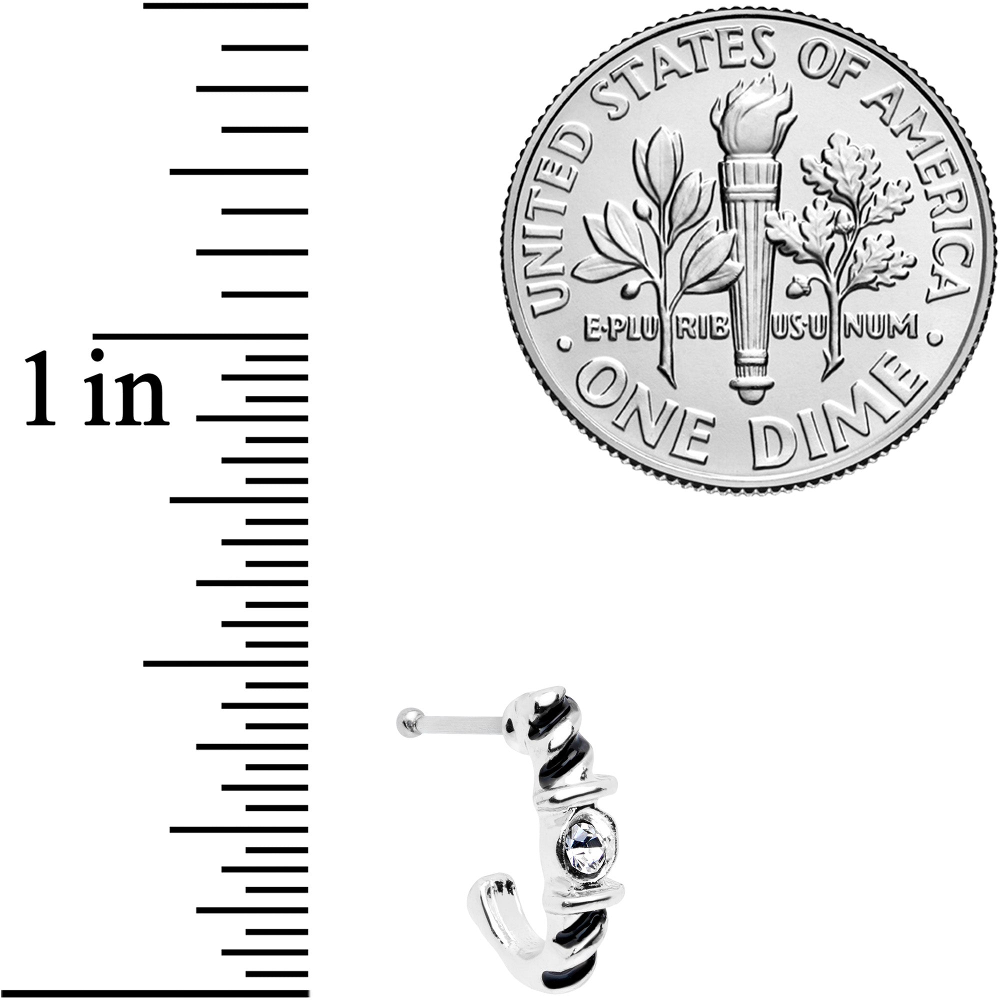 This 20 gauge nose jewelry doesn't have a twist - it has two! It's made with a 10mm durable 316L surgical grade stainless steel post and features a curving portion that emulates the look of a hoop while offering the fit of a nose bone. The hoop portion features a twisted appearance that's antiqued to really make the details pop. At the center, it's set with a clear gem to give it even more visual interest and a look that really catches the eye. This nostril jewelry is twisted and in the best possible way!