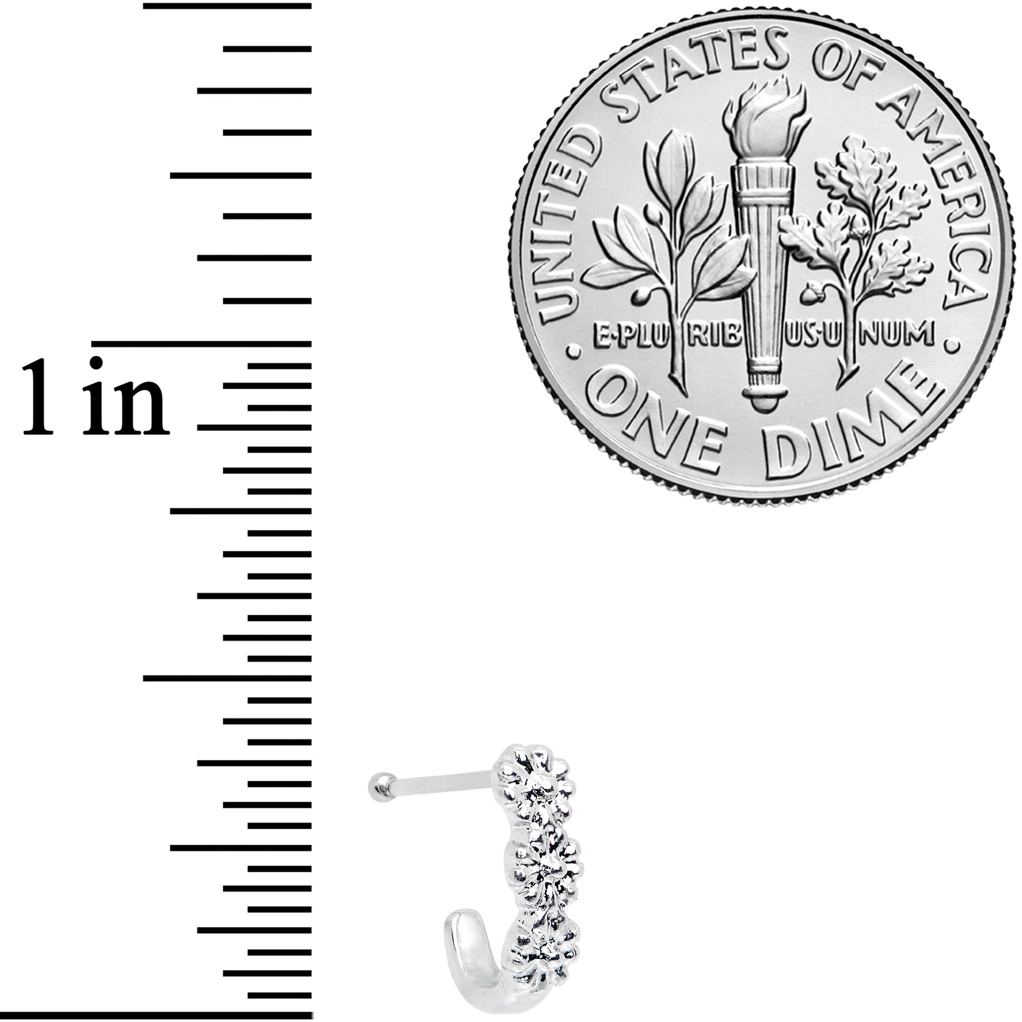 Embrace a free-wheeling floral look for your nose piercing when you wear this 20 gauge nose ring that looks like a hoop! Made with a 10mm durable 316L surgical grade stainless steel post, this nostril piercing features a daisy chain flower charm that wraps halfway around the nose and sits outside of your nostril to give the illusion of a hoop in your regular (pierced!) piercing without actually wearing a hoop at all. Try something new; this nature-inspired nose jewelry may be right for you!