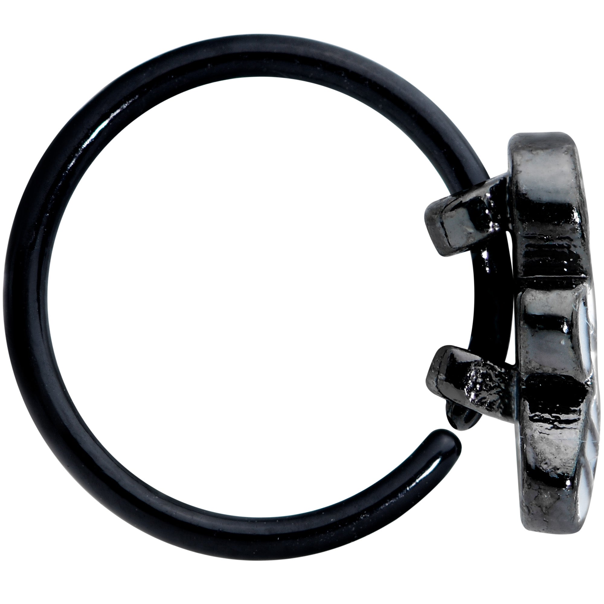 If you want to wear spooky style from head to toe this Halloween then you will love this 20 gauge nose piercing so much! Made with an 8mm black PVD over 316L surgical grade stainless steel circular ring, this nose jewelry features a red-eyed mummy charm that you will love to wear whether it's Halloween or not.
