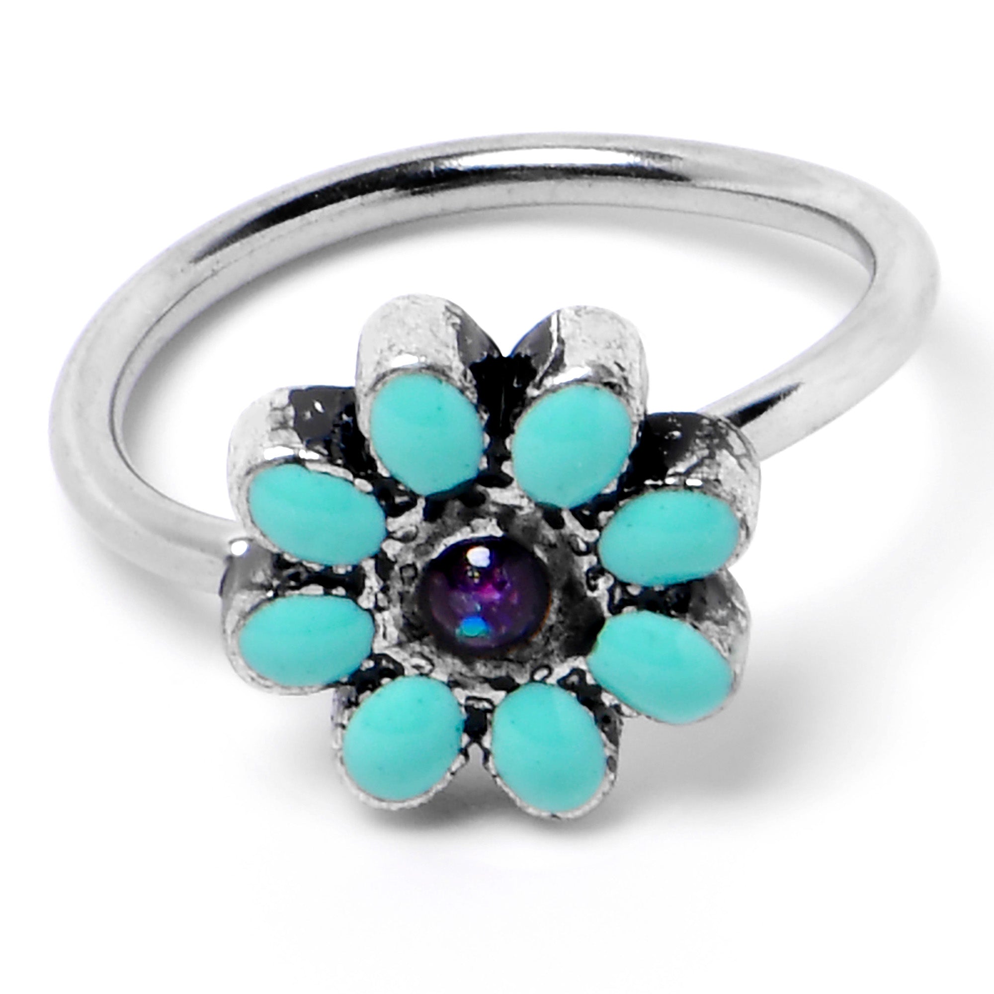 20 Gauge 5/16 Blue Gem Flower Teal Petals Nose Hoop