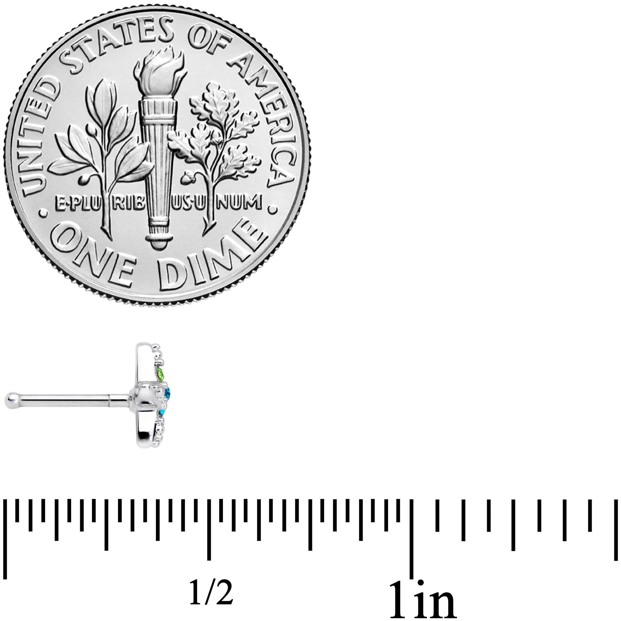 The ocean's gone opulent on this 20 gauge nostril jewelry! It's made with an 8mm durable 316L surgical grade stainless straight post. It features a starfish charm paved with gems in blue, bright green, and clear. It's as hot as any summer's day at the beach and twice as sexy. Let this seductive starfish add its stylish colors to your nostril piercing!