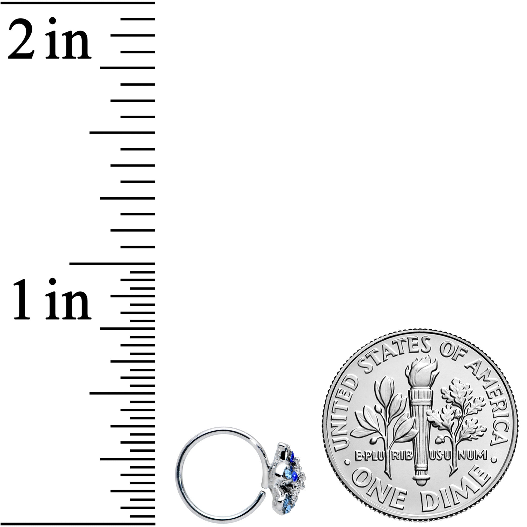 Look at the beautiful blues on this 20 gauge nostril ring! It's made with an 8mm durable 316L surgical grade stainless steel circular ring. It features an abstract flower charm. The flower is heavily set with clear and blue gems for a look that's both stylish and opulent. Let the blues bloom in your nose piercing with this fabulous floral nostril jewelry!