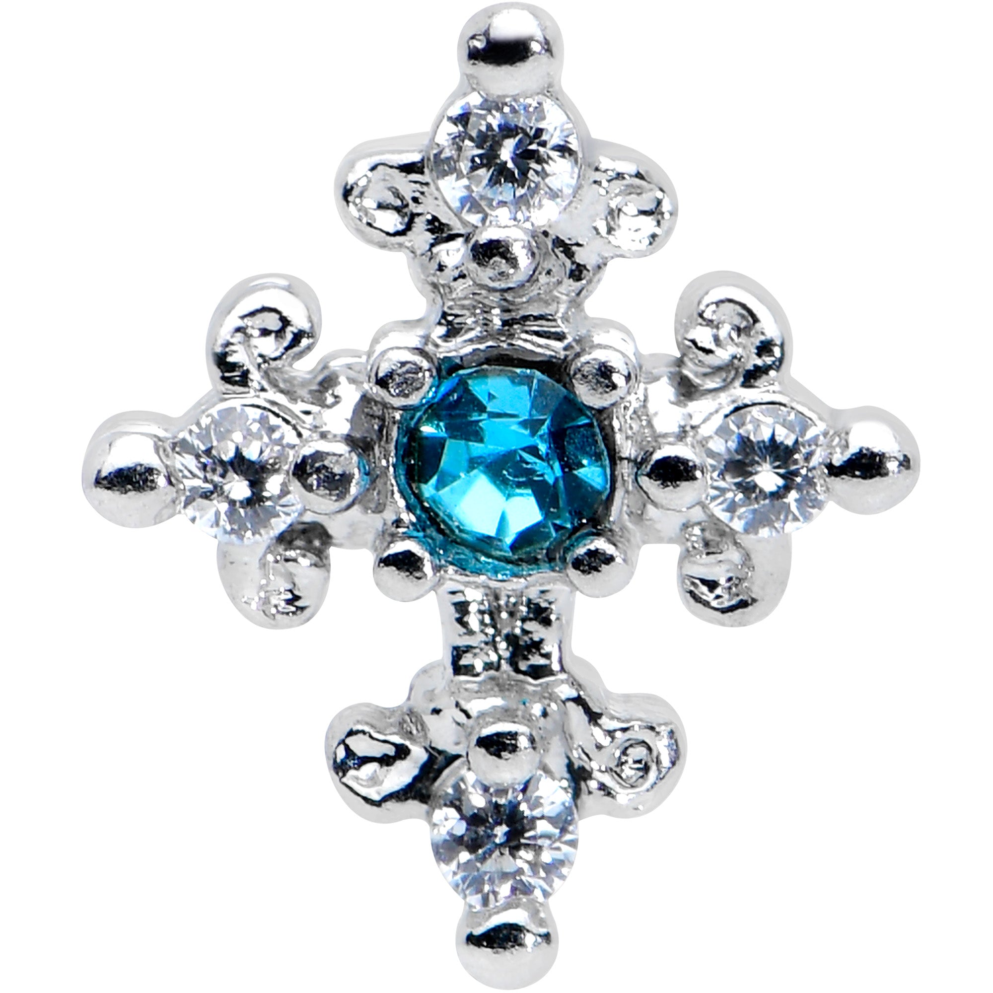 20 Gauge 5/16 Clear Blue Gem Renaissance Cross Nose Bone