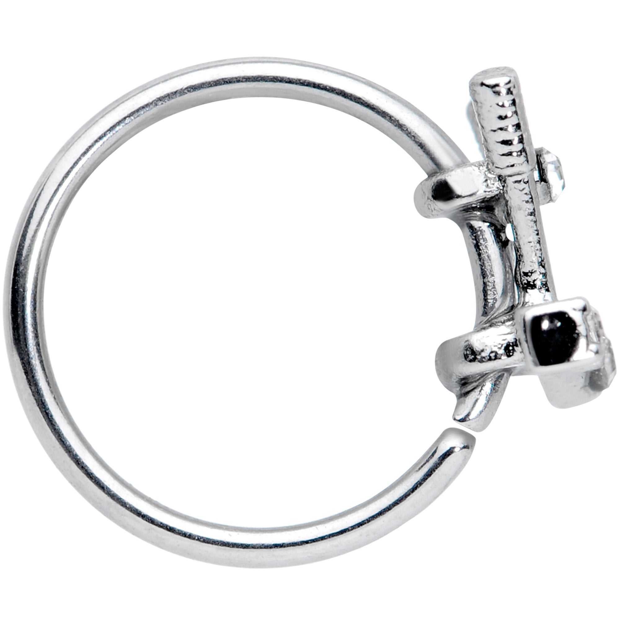 20G 5/16 Clear CZ Gem Crossed Golf Clubs Nose Hoop