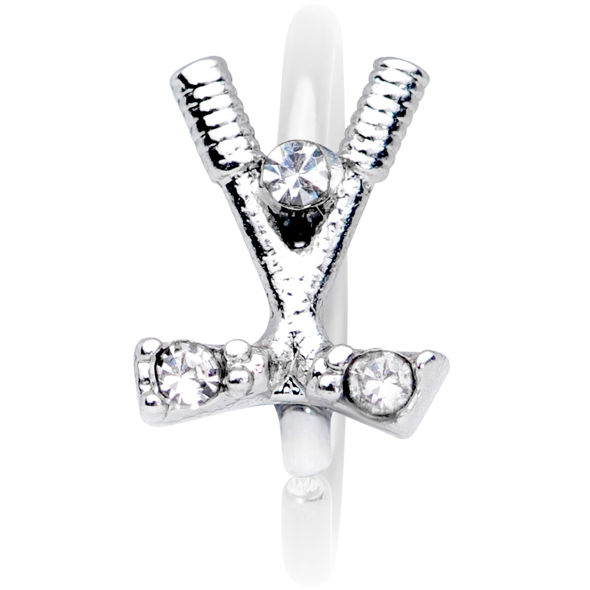 20 Gauge 5/16 Clear CZ Gem Crossed Golf Clubs Nose Hoop