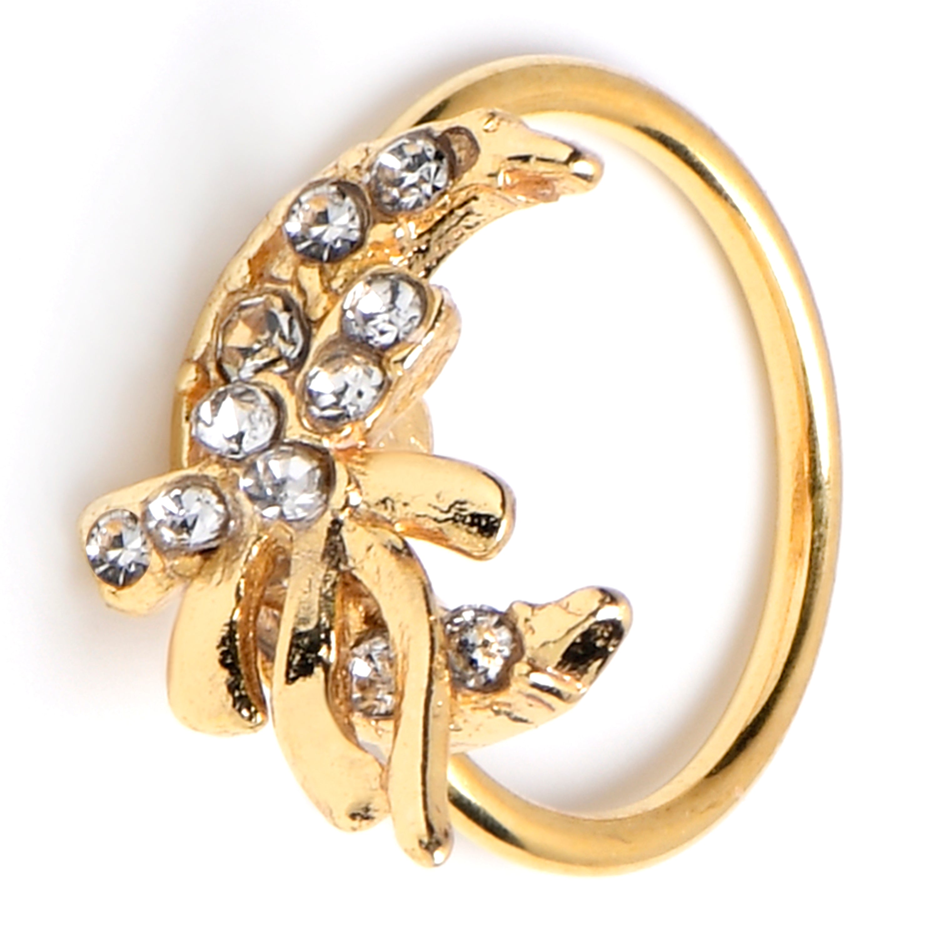 20G 5/16 Clear CZ Gem Gold Tone Bow Moon Nose Hoop