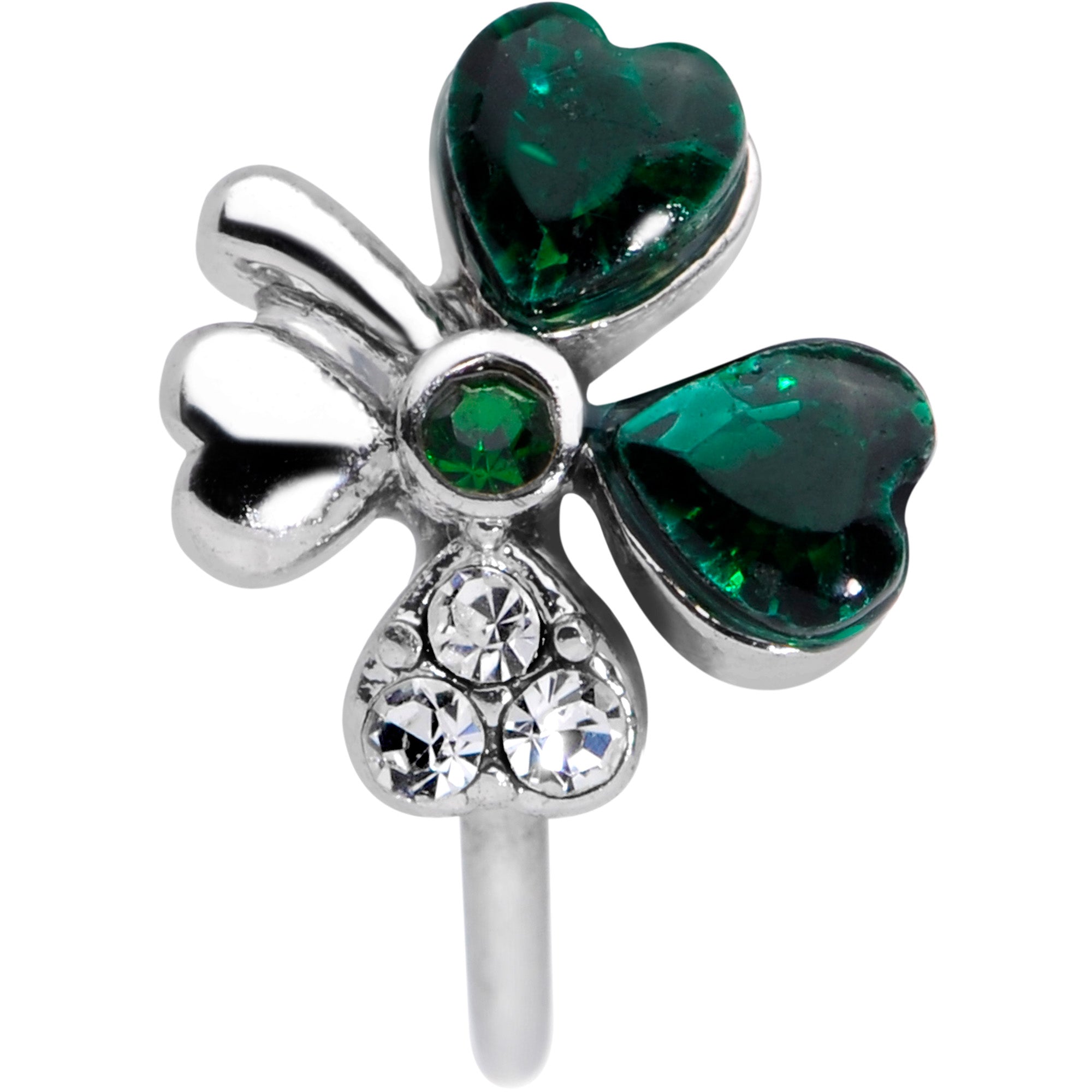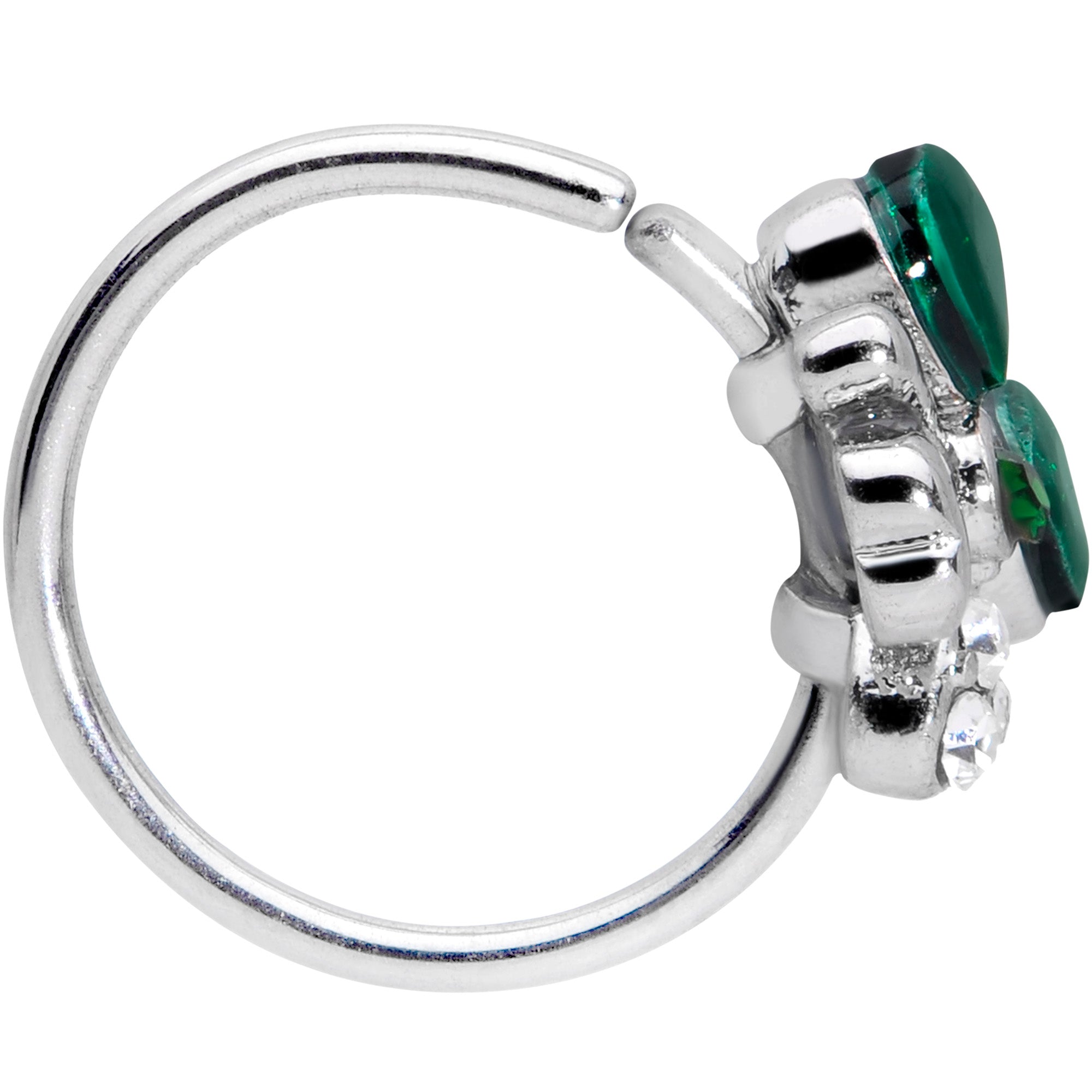 20G 5/16 Clear Green Gem Shamrock St Patricks Day Nose Hoop