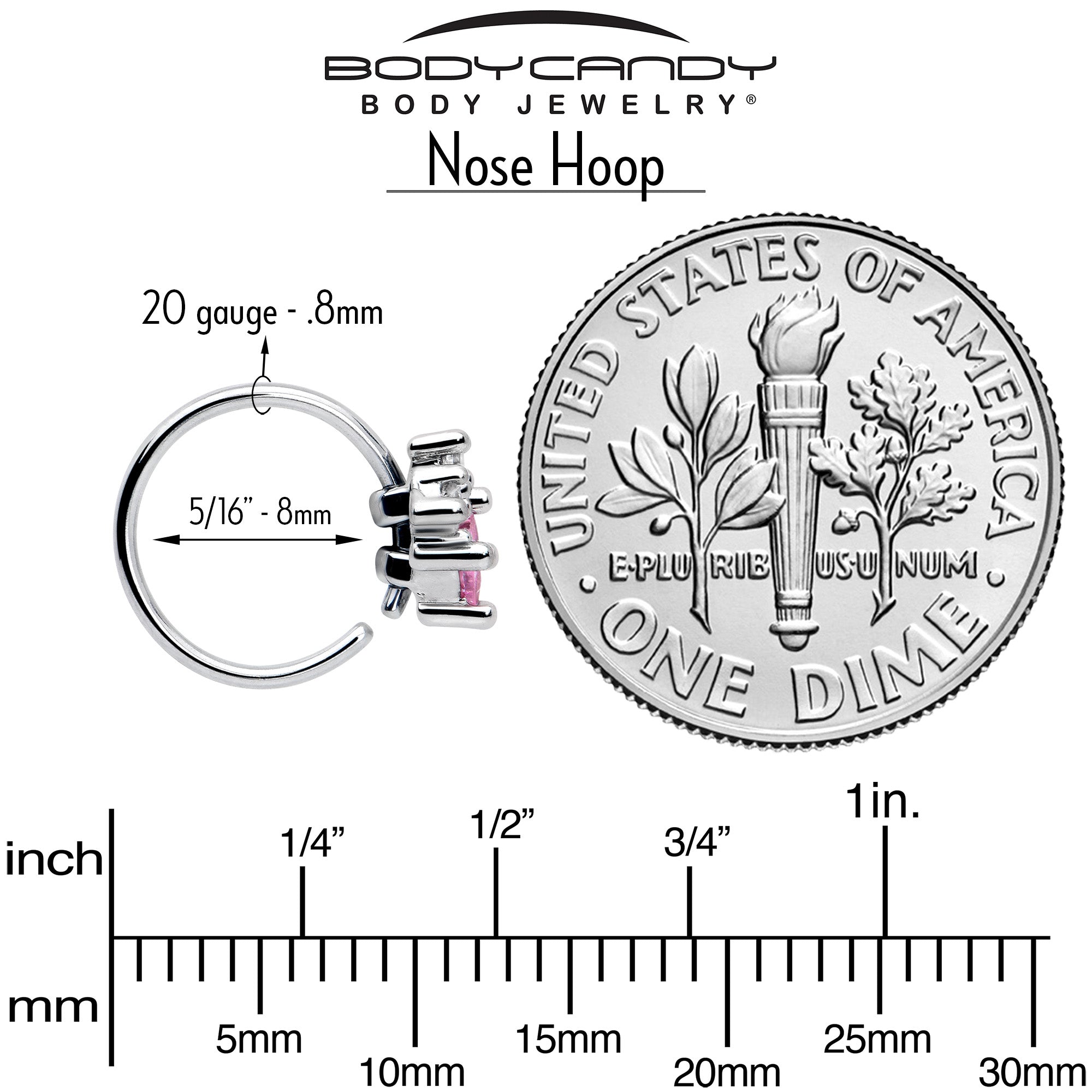 20 Gauge 5/16 Clear Pink CZ Gem Rhombus Riot Nose Hoop