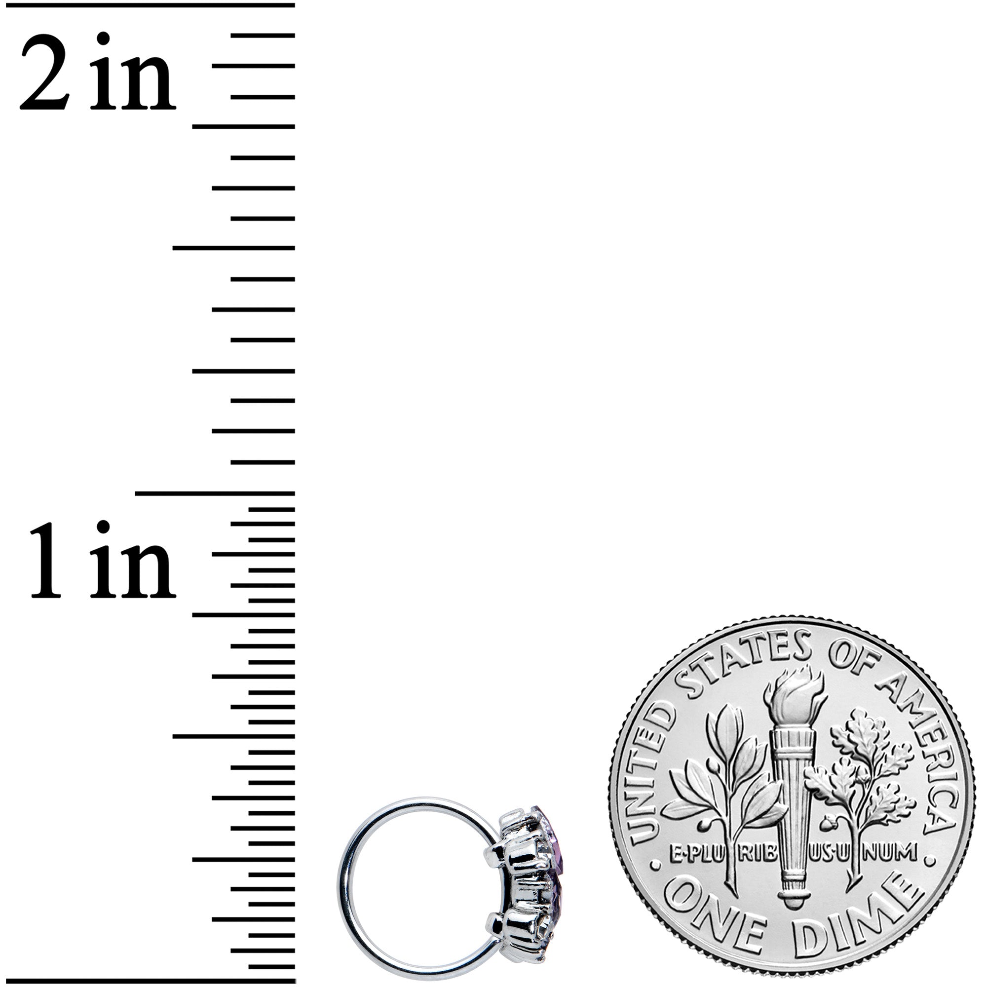 Add some rich color and abstract style to your look with this 20 gauge nostril ring! It's made with an 8mm durable 316L surgical grade stainless steel circular ring. It features an abstract charm featuring deep purple gems in oval shapes. They're embellished with clear gems for an opulent look and stylish contrast that really makes this nose piercing ring stand out in a crowd! Add some artistic abstract elegance to your look when you're rocking this colorful nostril jewelry!