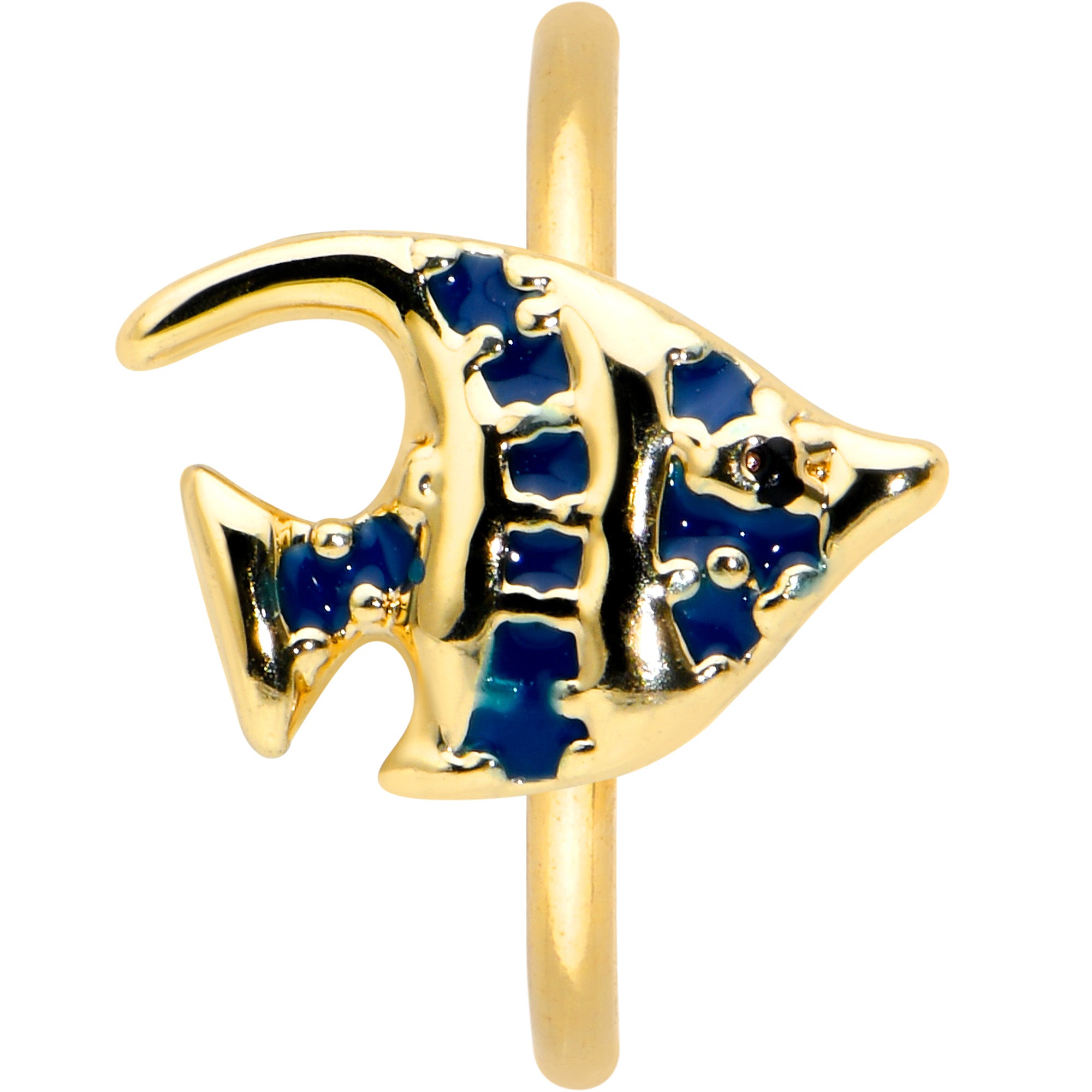 20G 5/16 Gold Tone Blue Adorable Angelfish Nose Hoop