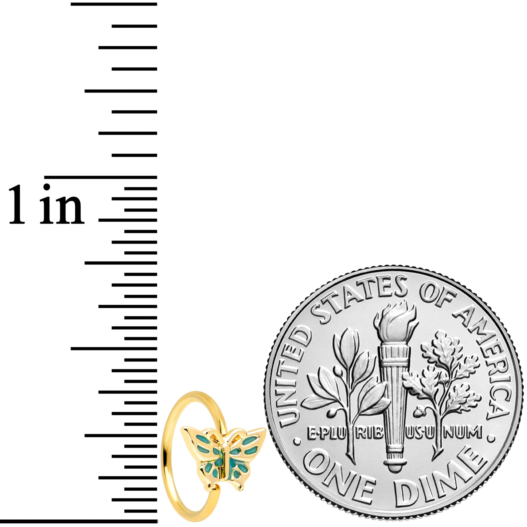 20 Gauge 5/16 Gold Tone Green Inlay Butterfly Nose Hoop