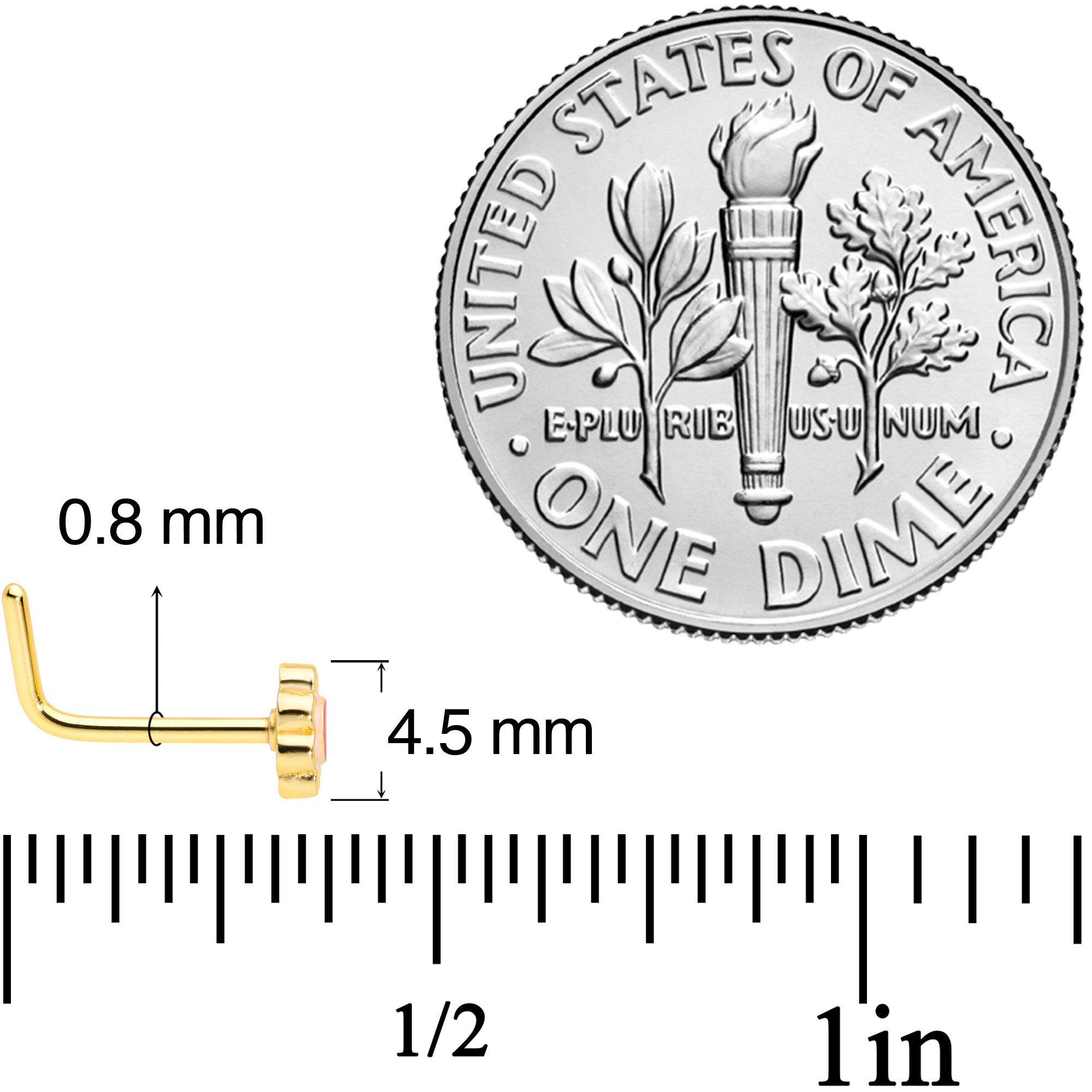 If you love a fashion statement that is all about the beauty of springtime then you will love this 20 gauge nose piercing! Made with an 8mm length at the bend gold tone anodized over 316L surgical grade stainless steel L-shaped post, this nose jewelry features a pink and white flower charm that will make you feel like the spring season all year 'round.
