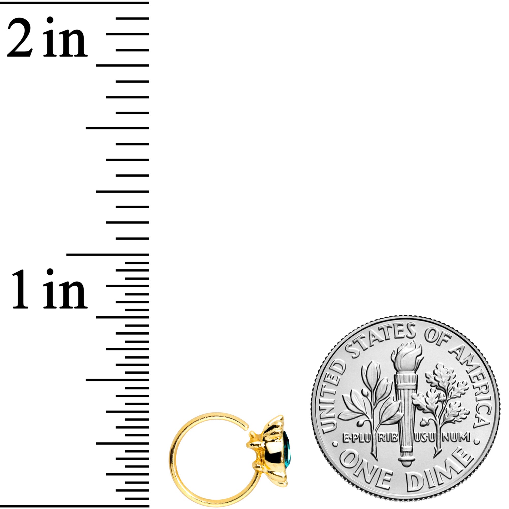 20 Gauge 5/16 Green Gem Gold Tone Teardrop Nose Hoop