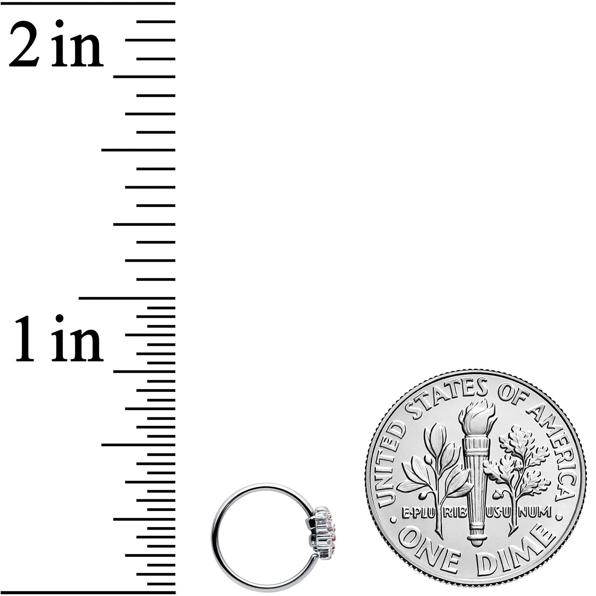 You'll have a look that's downright delicious with this 20 gauge nostril ring! It's made with an 8mm durable 316L surgical grade stainless steel circular ring. It features a tree charm, set with inlays in shades of pink and red, as well as white. Get a sweet and tasty look with this fabulous fruit tree nose piercing ring!