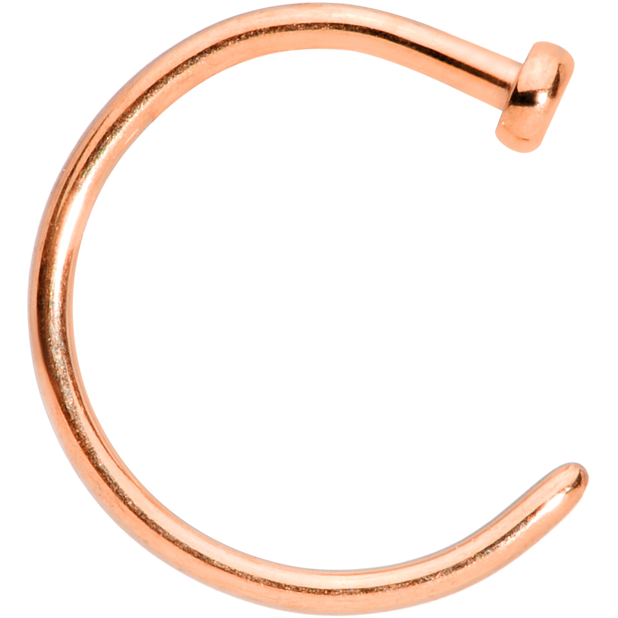 Sometimes the simple things in life are the best. Made of a rose gold tone PVD over solid grade 23 implant grade titanium circular ring, this 20 gauge nostril ring is built for comfort as well as serious durability. It measures 8mm length and has a flat top to rest comfortably against your nostril so you'll barely notice that it's there. Simple beauty and simple comfort mean you're going to simply love it!