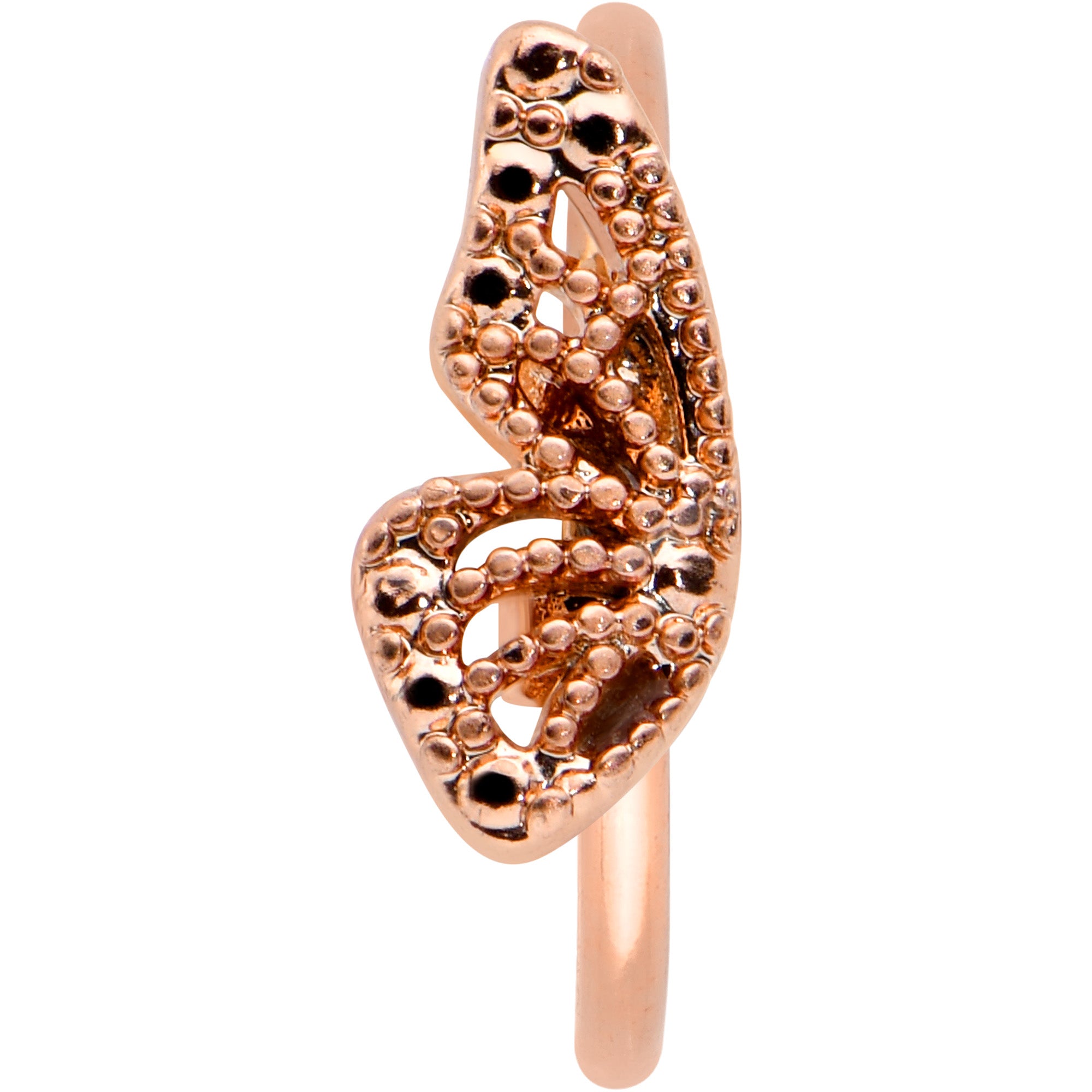 20G 5/16 Rose Gold Tone Textured Butterfly Wing Nose Hoop