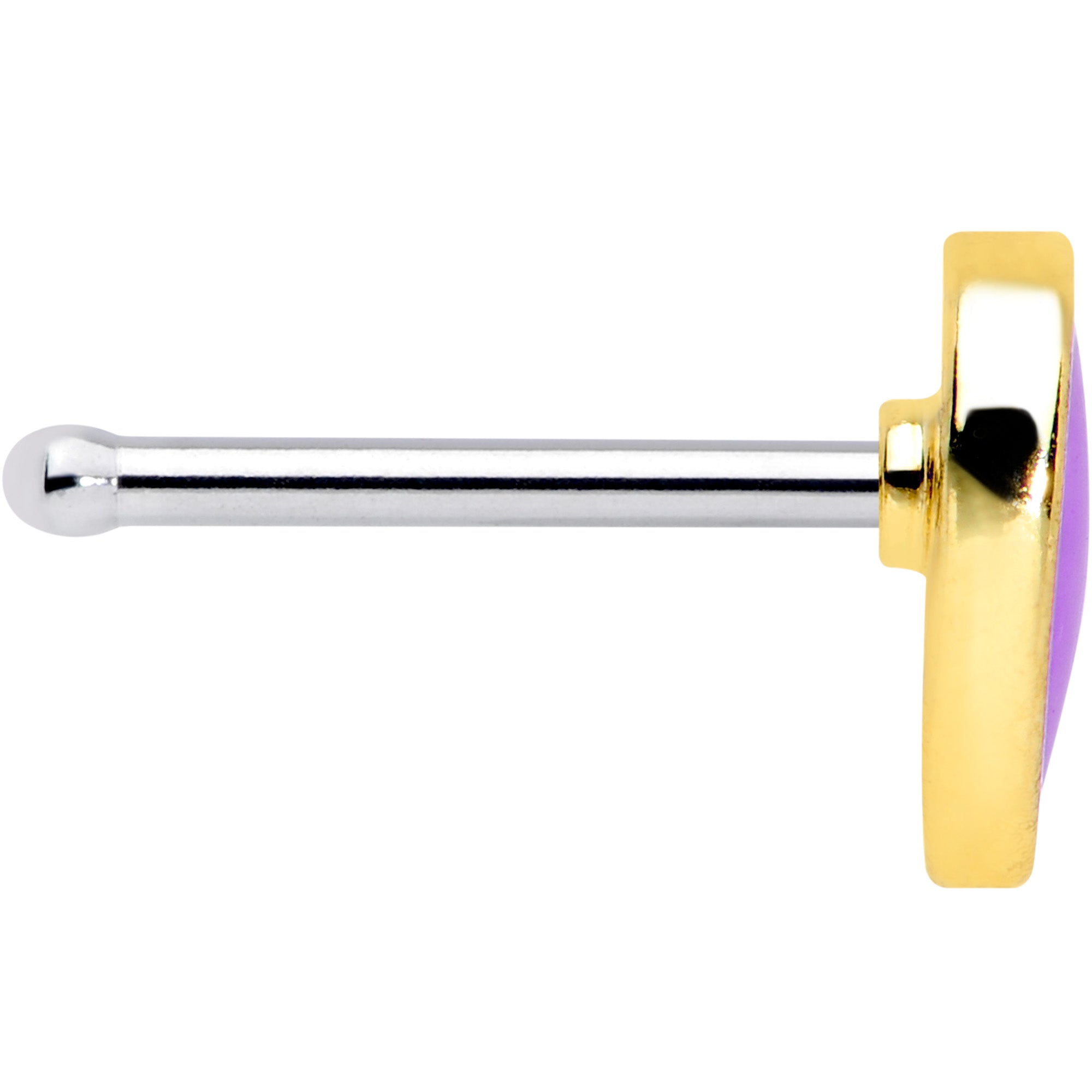 Oh sweetheart, I love your new 20 gauge nostril jewelry! It's made with an 8mm durable 316L surgical grade stainless steel straight post. The end features a light purple heart with gold tone edging. The overall look is simple and classic, but with a touch of colorful whimsy. Combine those features with the ease of insertion and removal and this is one nose ring you can't help but fall in love with!