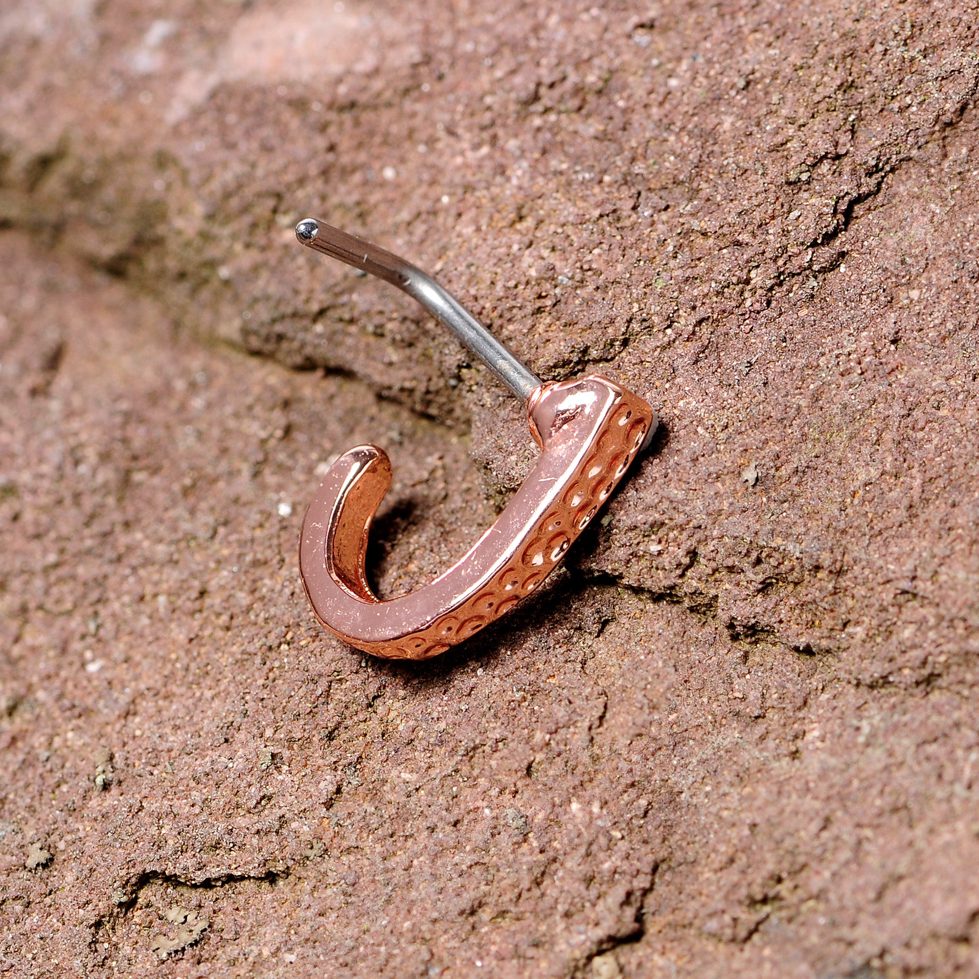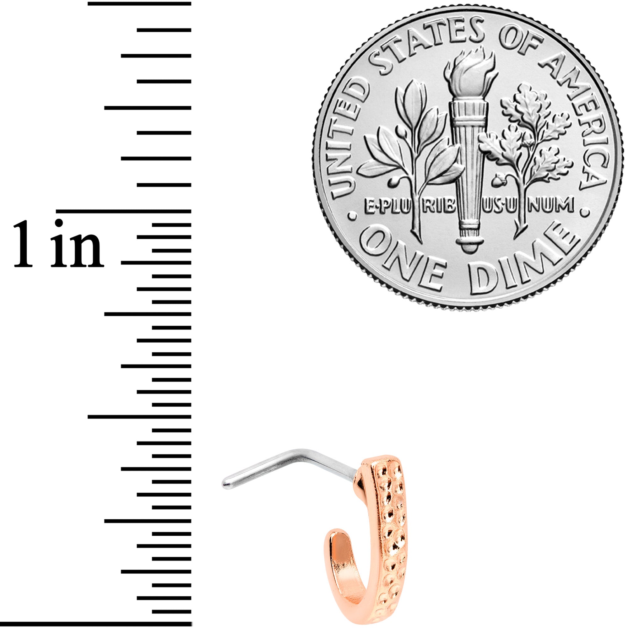 20G 5/16 Rose Gold Tone Dainty Dots Faux Hoop L Shaped Nose Ring