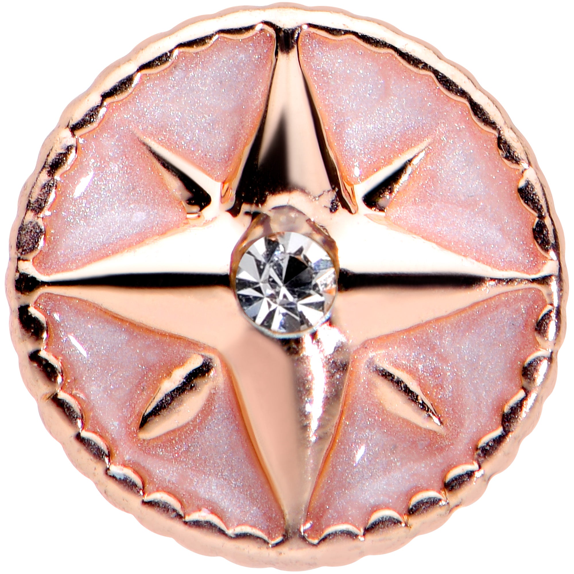 20 Gauge 7.5mm Clear Gem Rose Gold Tone Sailors Compass Nose Bone