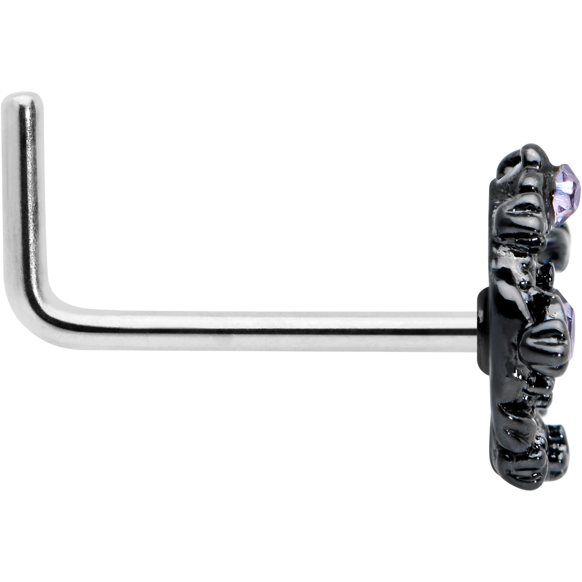 20G 7.5mm Purple Gem Regal Black Crown Heart L Shape Nose Ring