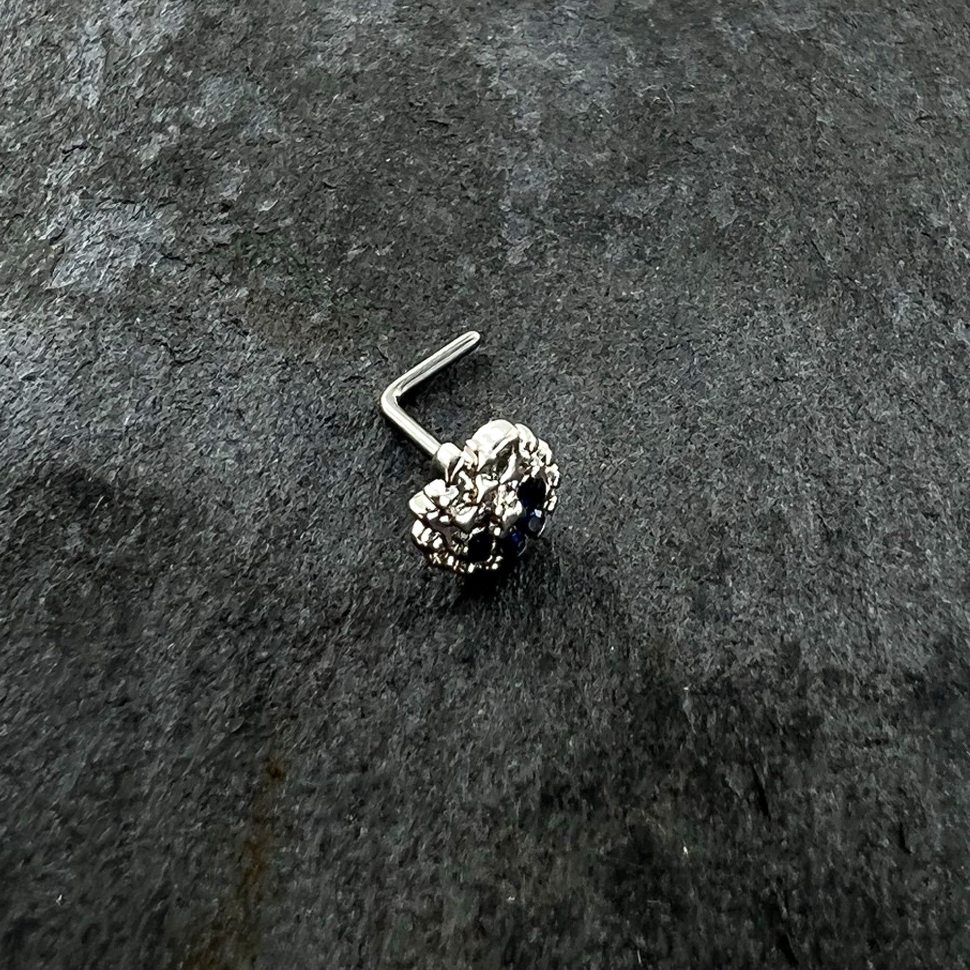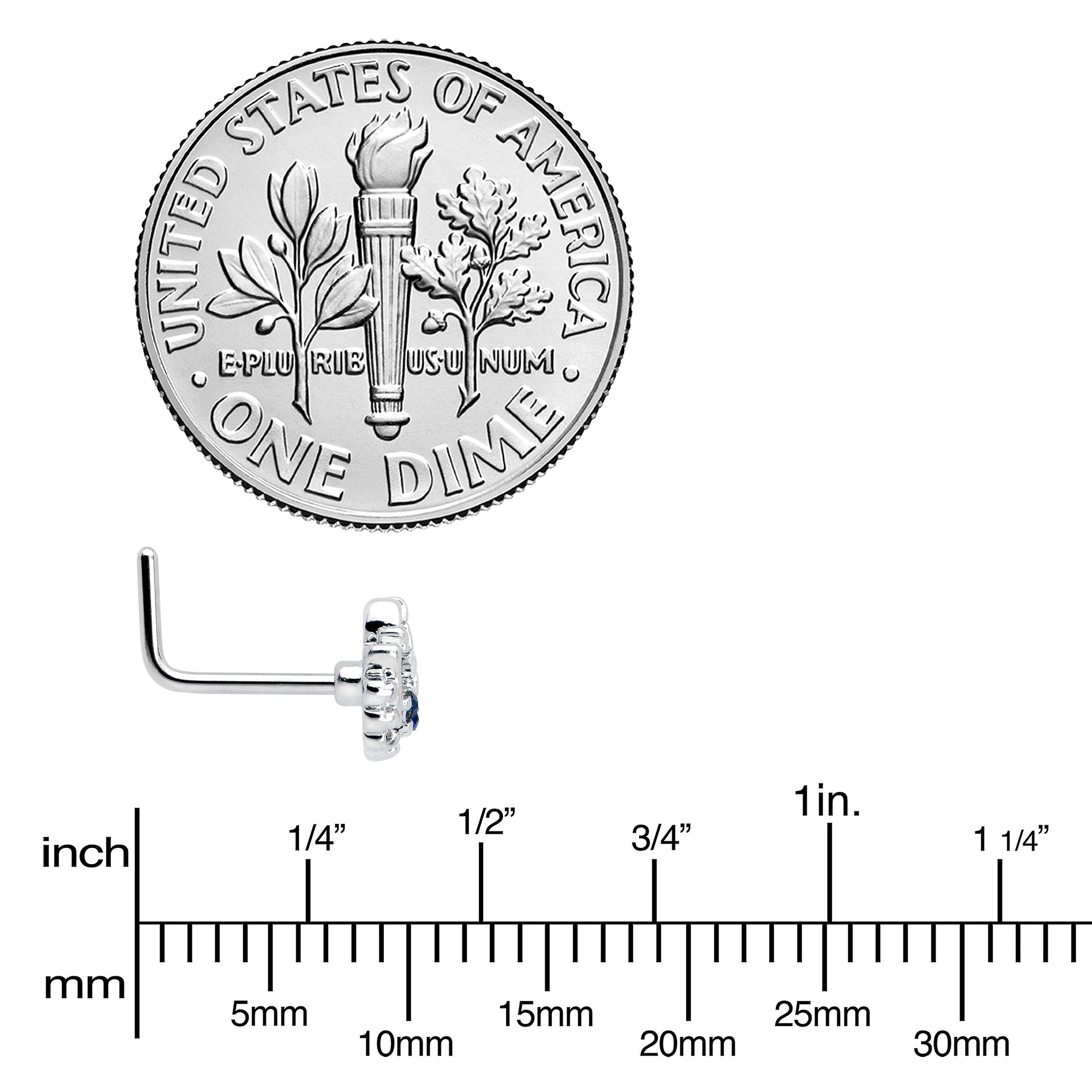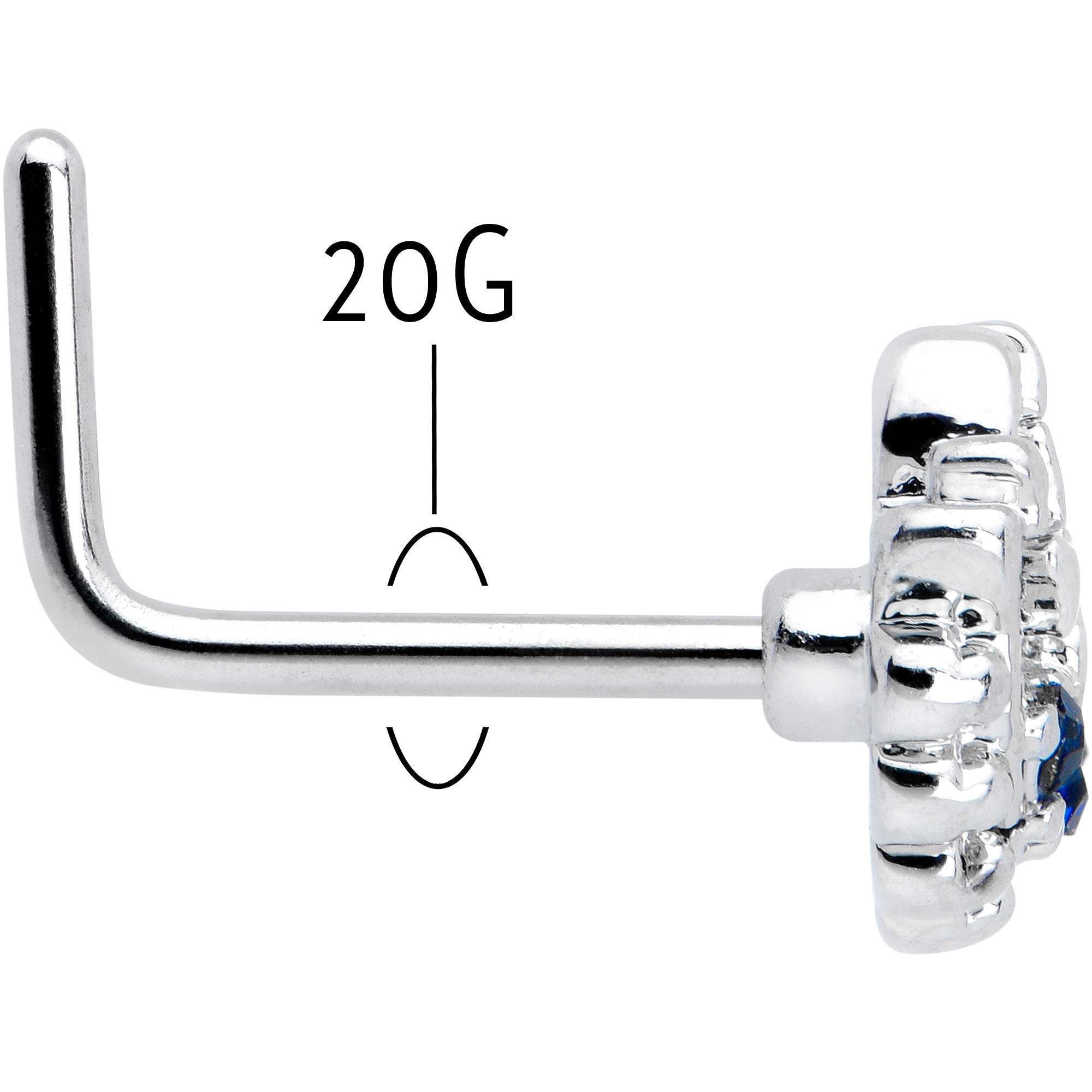 20G 7mm Blue Clear Gem Abstract Arch L Shape Nose Ring