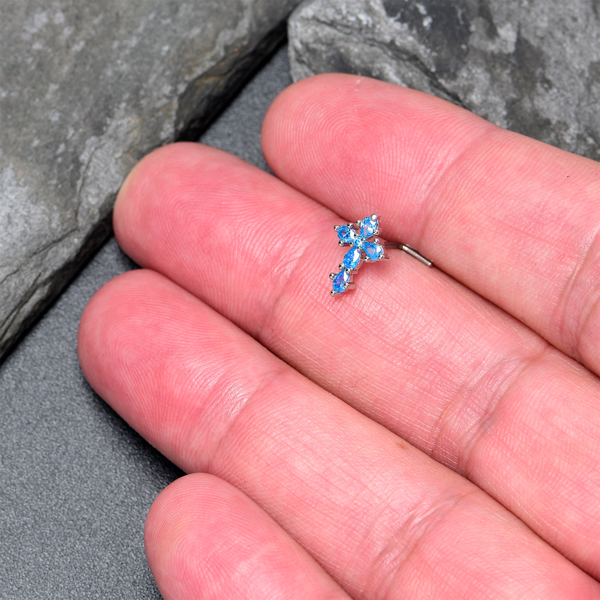 20 Gauge 7mm Blue CZ Gem Classic Cross L Shape Nose Ring