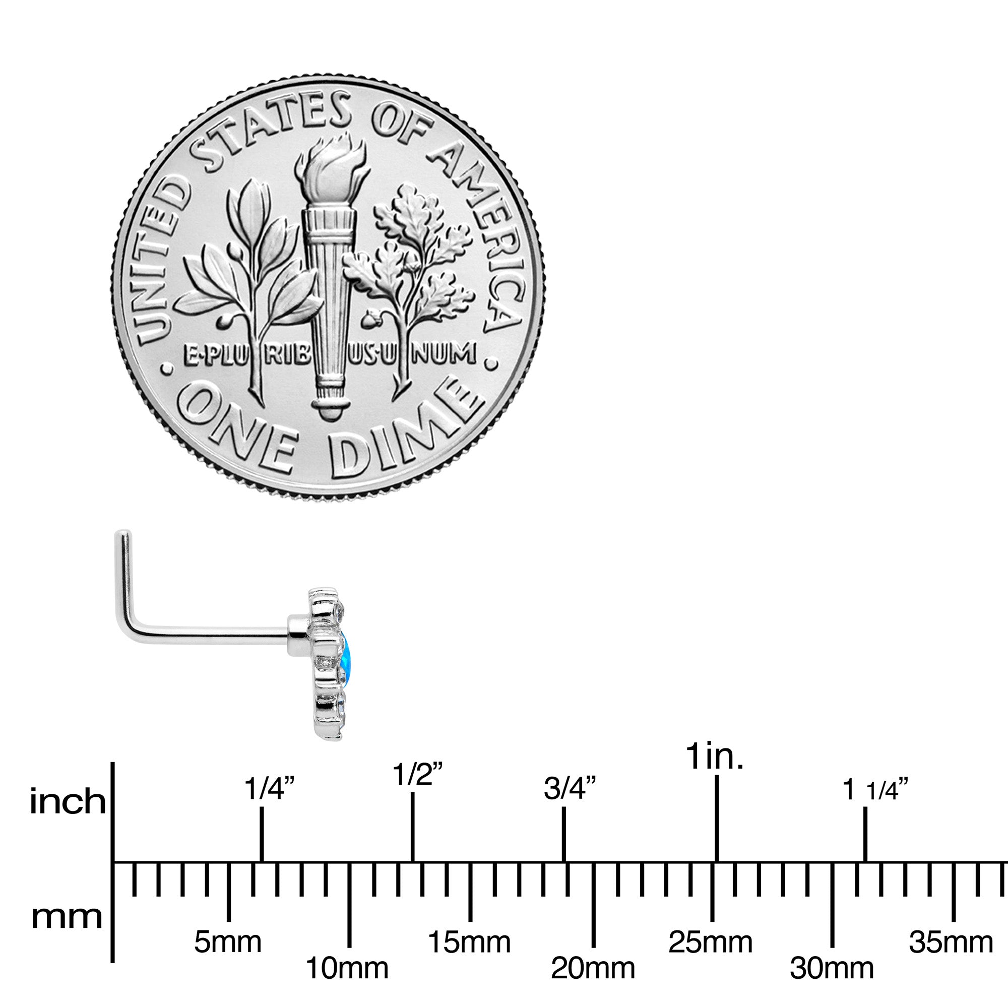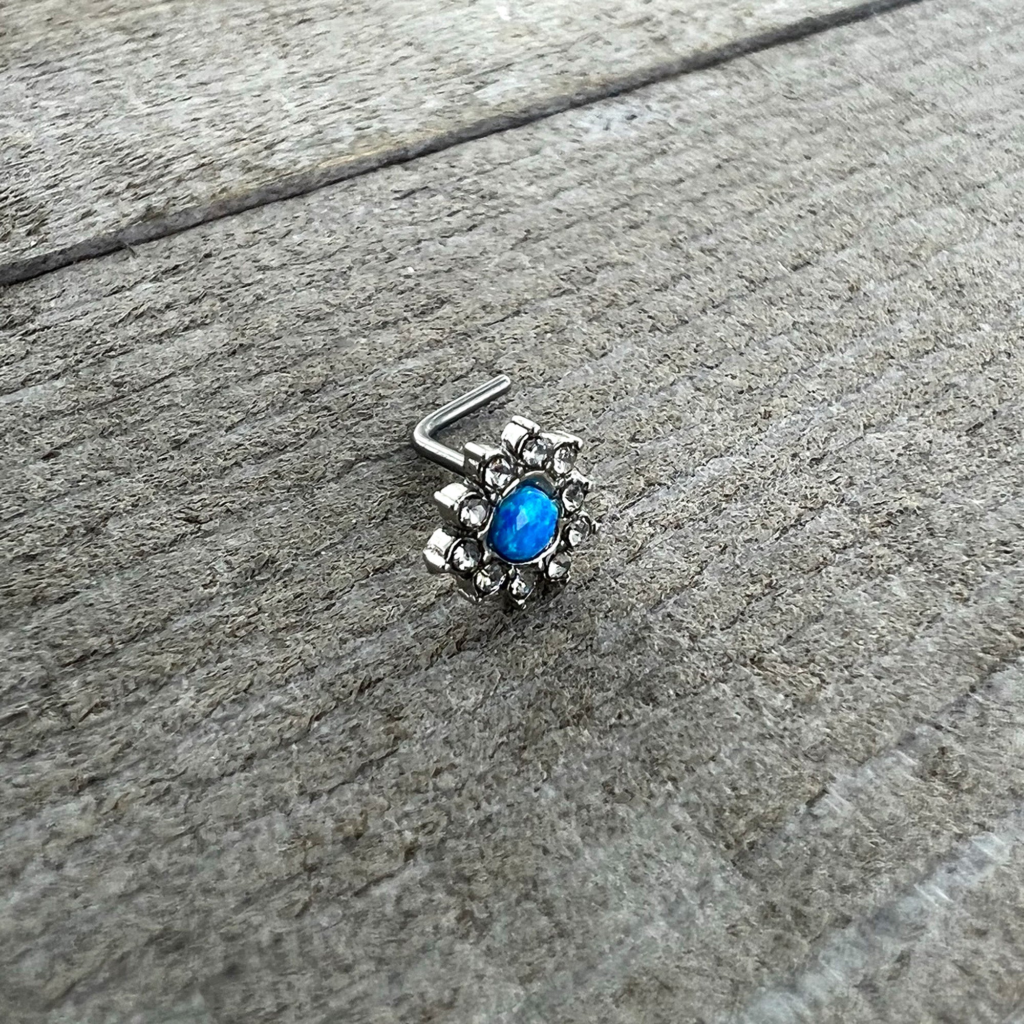 20 Gauge 7mm Blue Faux Opal Heart Sun L Shape Nose Ring