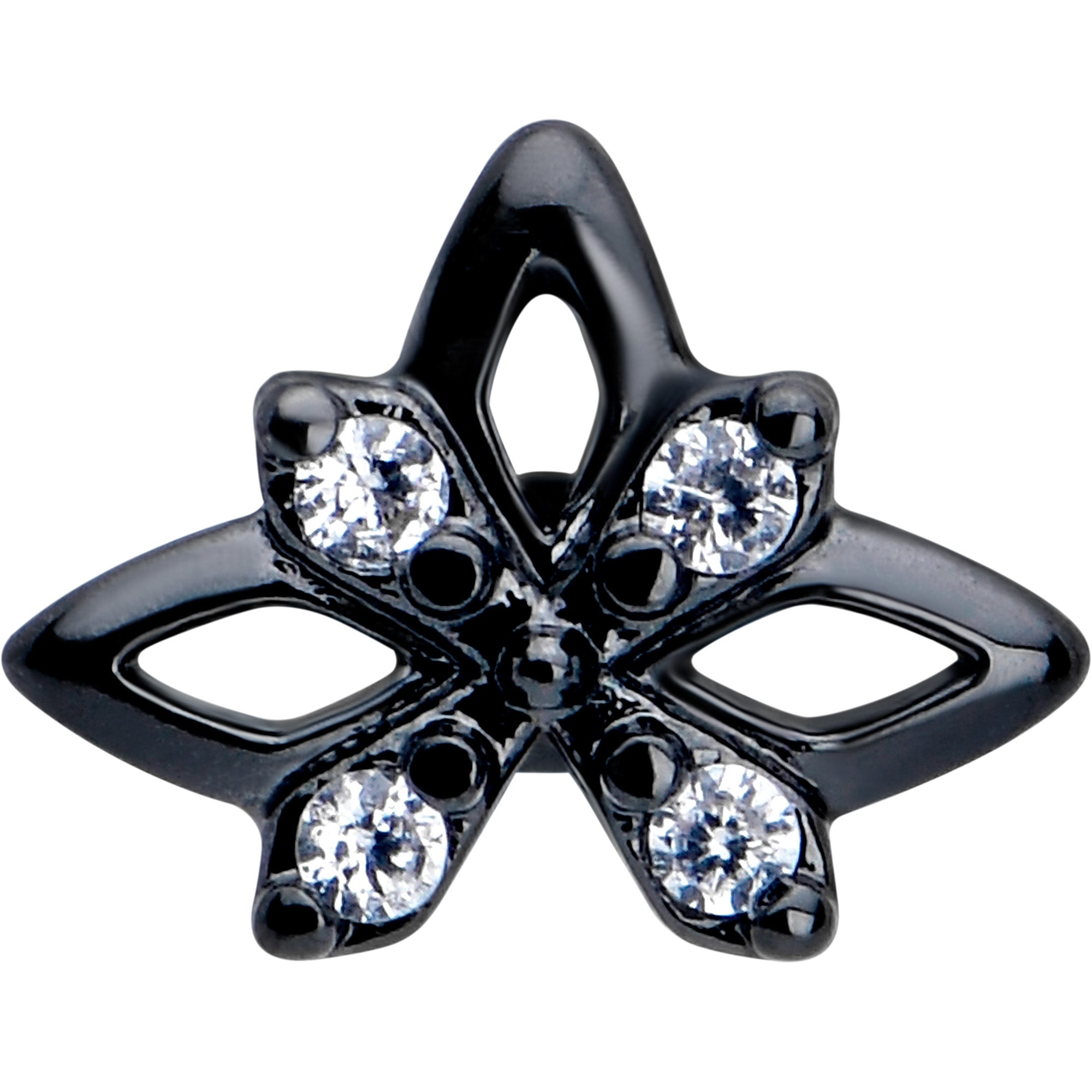 Fall in love with a goth new look, like on this 20 gauge nostril ring. It's made with a 0.27 inch length at the bend black PVD over 316L surgical grade stainless steel L-shaped post. It features a star charm with an X over it, set with clear cubic zirconia gems at the cardinal points. It is further embellished with textured detailing for added style. Let your inner goth come out to play with this darkly divine nose piercing jewelry.