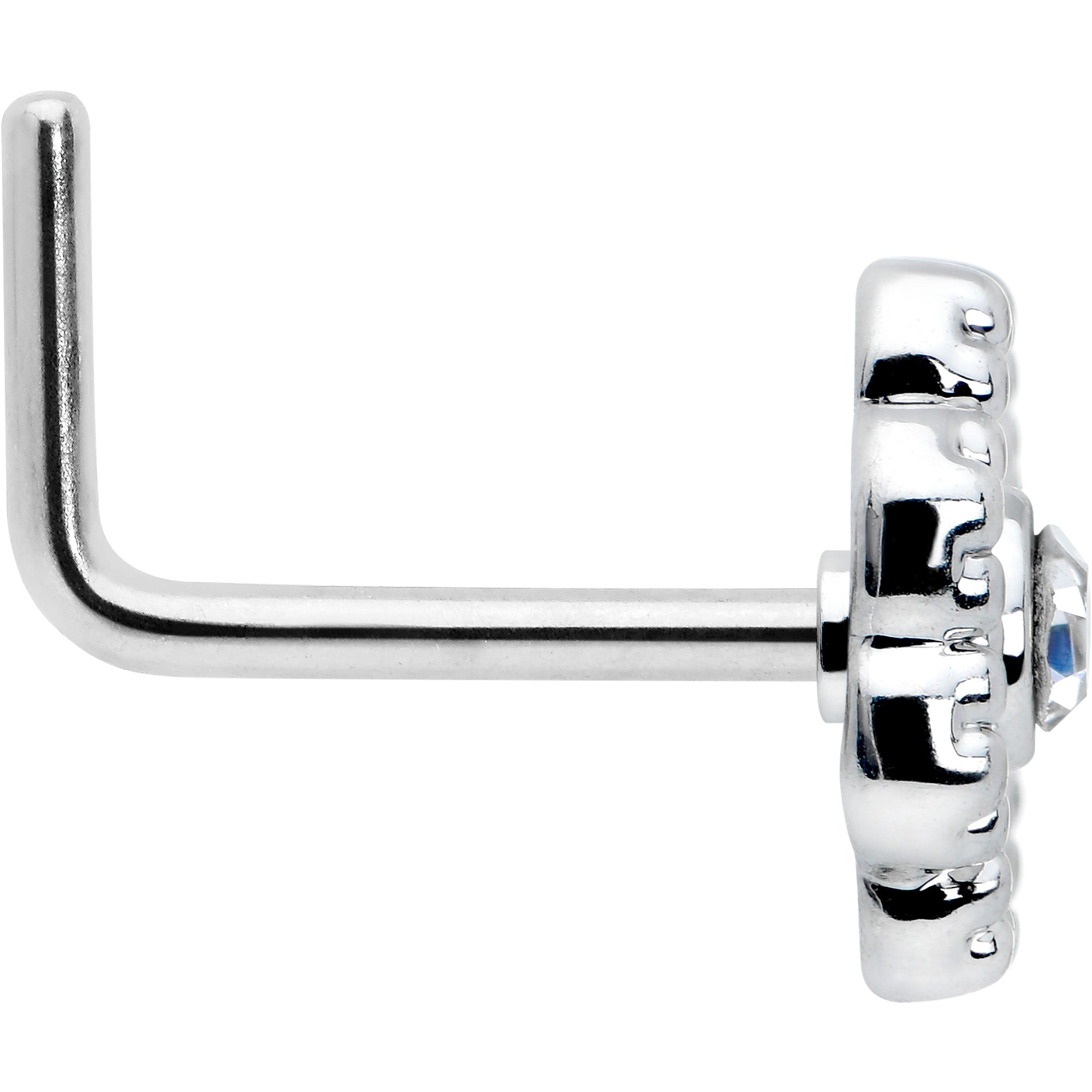 20G 7mm Clear Gem Epic Fabulous Flower L Shape Nose Ring