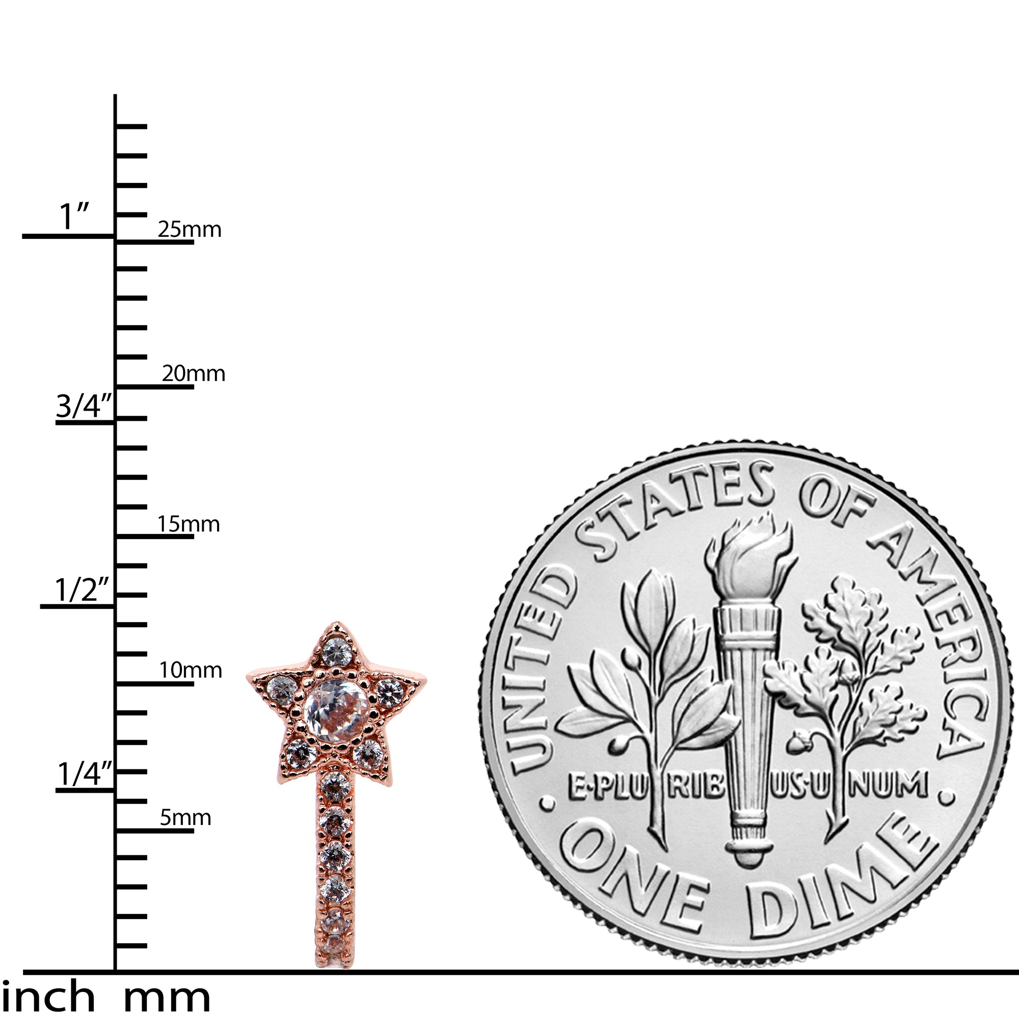 20 Gauge 7mm Clear Gem Rose Gold Hue Starry Faux Hoop L Shape Nose Ring