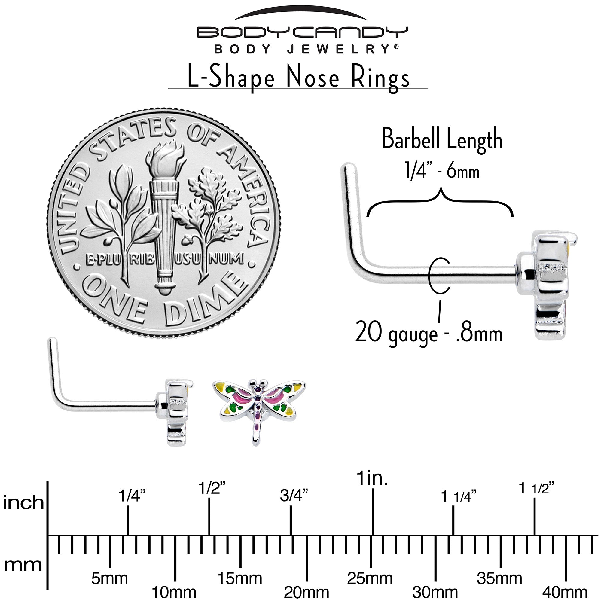 20 Gauge 7mm Dragonfly Colors L Shape Nose Ring