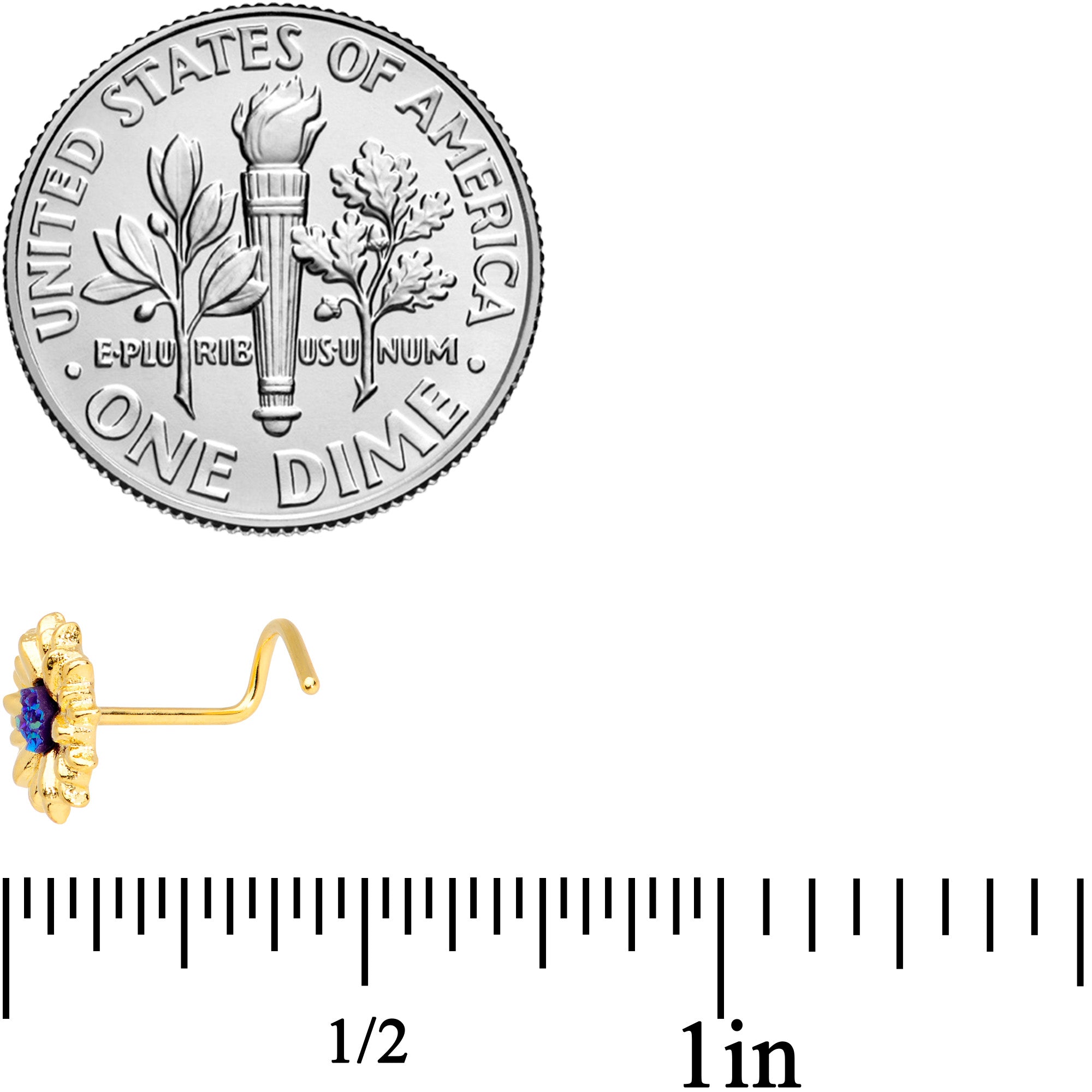 20G 7mm Gold Tone Blue Center Sunflower Nose Screw