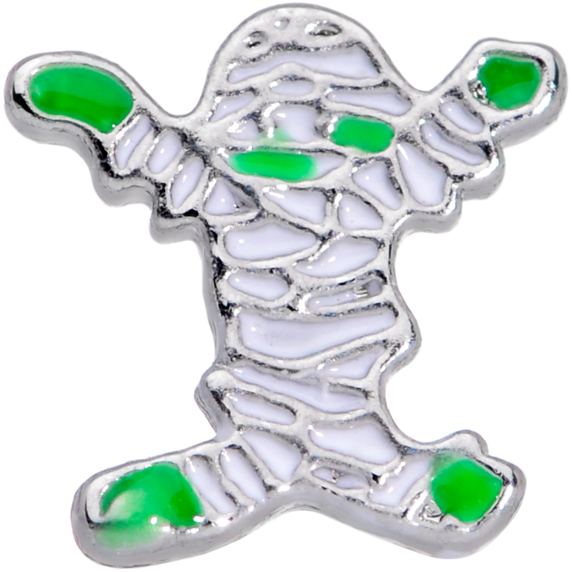 The mummy on this 20 gauge nostril ring will have your piercing looking perfect for Halloween! It's made with a 7mm length at the bend 316L surgical grade stainless steel L shaped post. It features a charm of a mummy, with gruesome green skin and white wrappings, arms spread as though it's ready to grab someone! With such creepy detailing, this mummy will have your piercing looking petrifying!