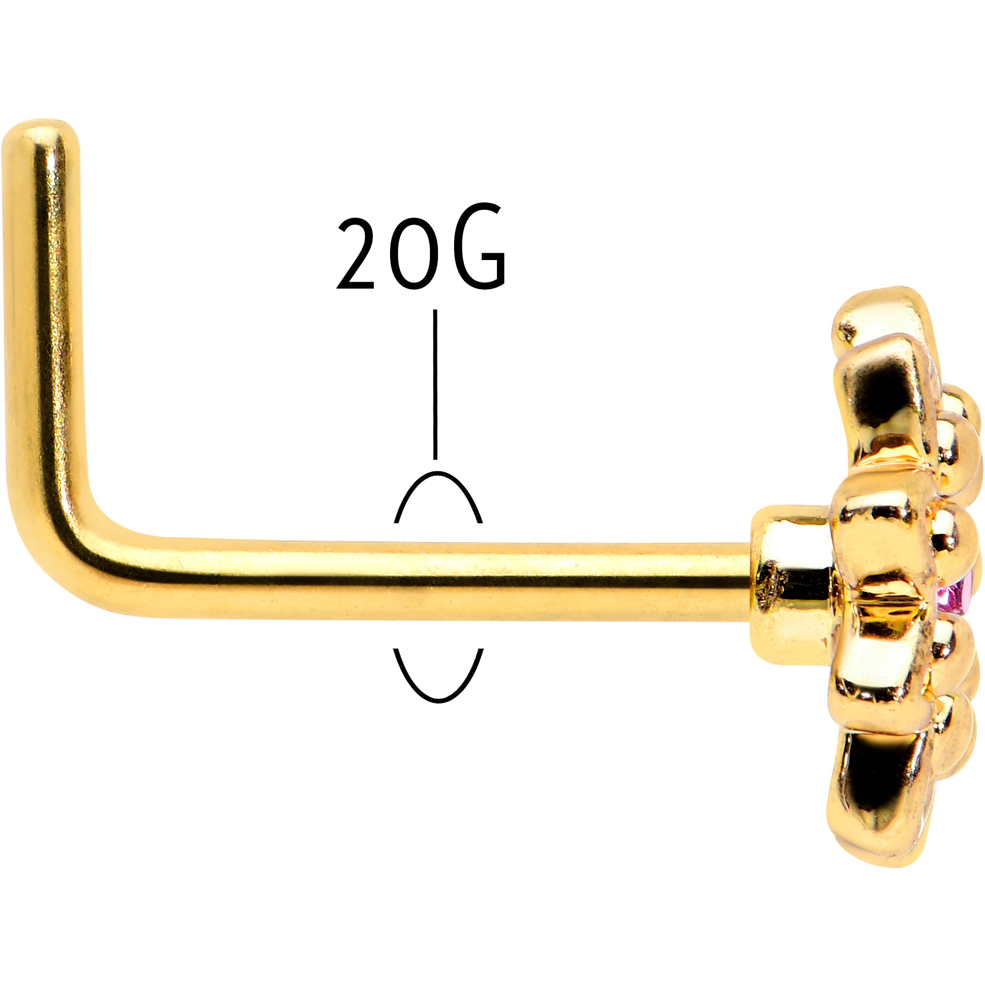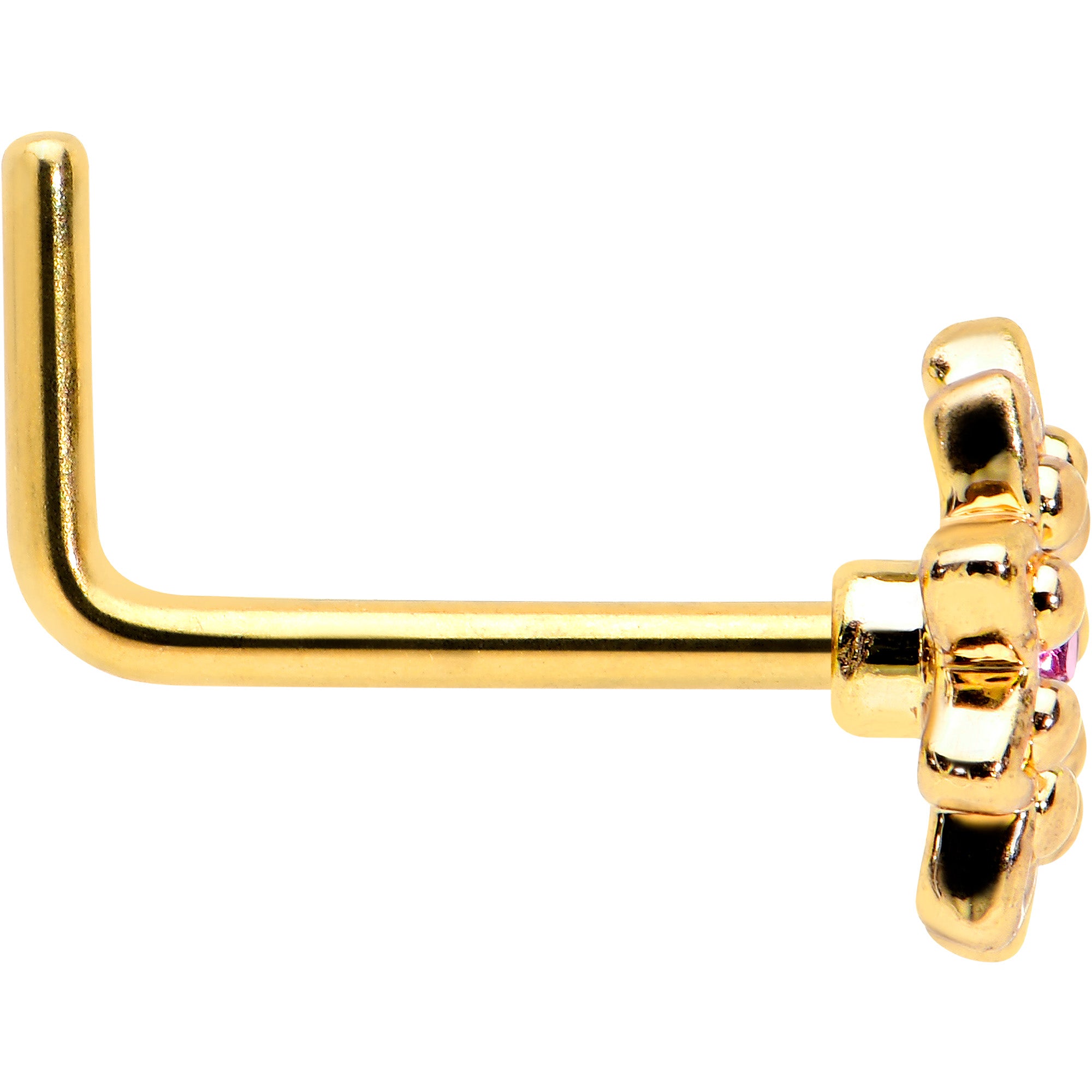 20 Gauge 7mm Pink Gem Gold Tone Starry Flower L Shape Nose Ring