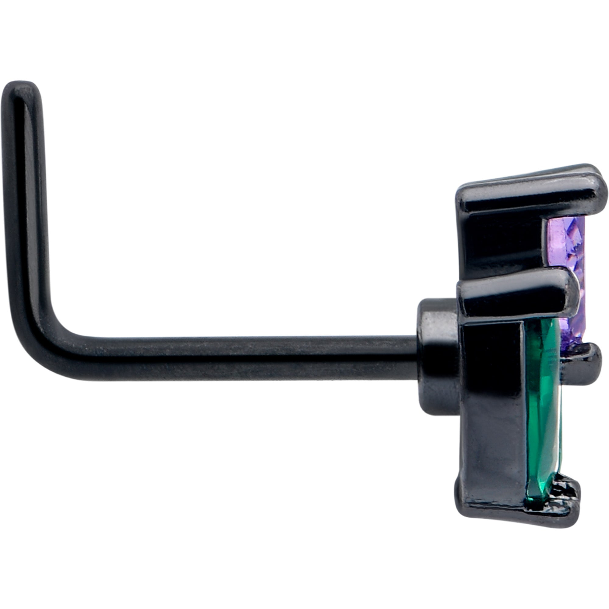 20 Gauge 7mm Purple Green CZ Gem Black Love Flower L Shape Nose Ring