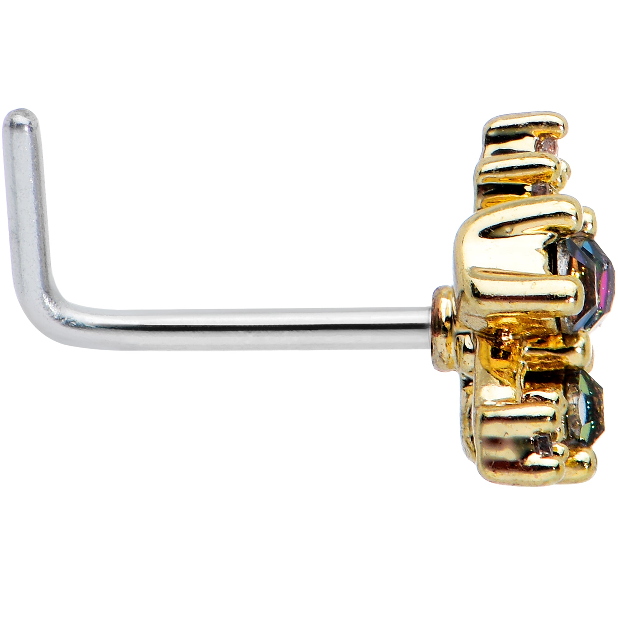 20G 7mm Purple Tourmaline Gold Tone Spray L Shape Nose Ring