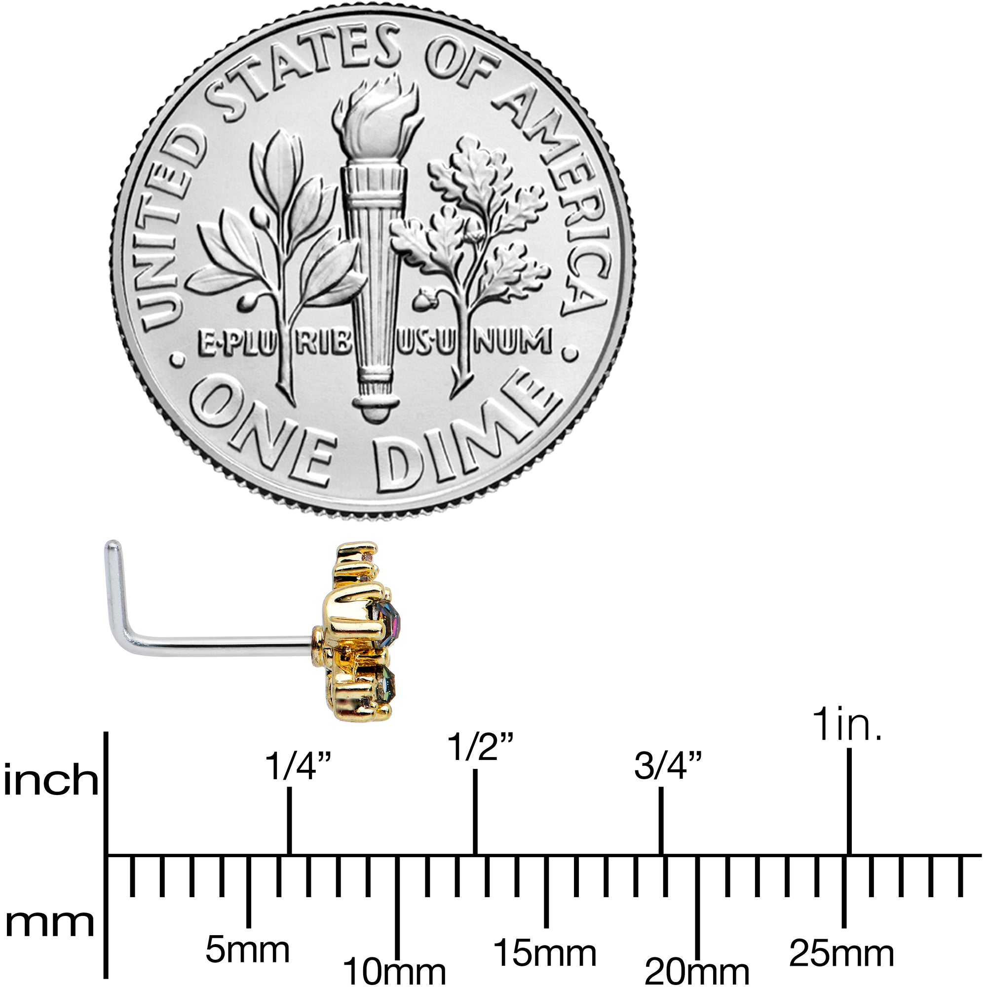 20 Gauge 7mm Purple Tourmaline Gold Tone Spray L Shape Nose Ring