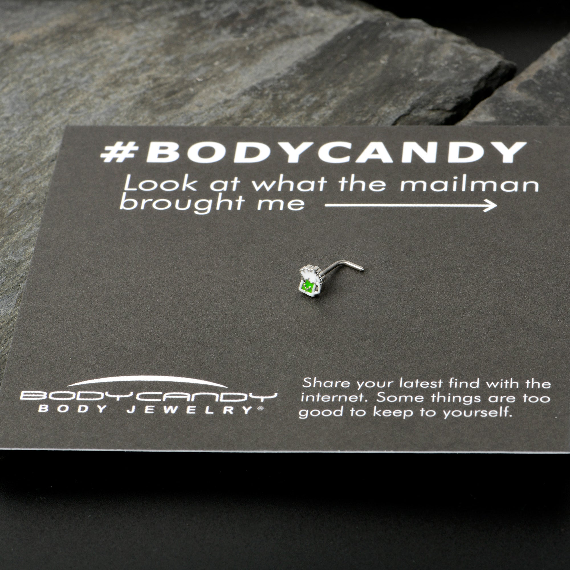 This St Patrick's Day, belly up to the bar with this 20 gauge nostril ring! It's made with a .27" length at the bend 316L surgical grade stainless steel L-shaped post. It features a green beer charm with white detailing and a happy, smiling expression. If you're looking for a bit of green to wear this St. Patrick's Day, have no fear - we've got some beer for your piercings with this festive nose piercing jewelry!