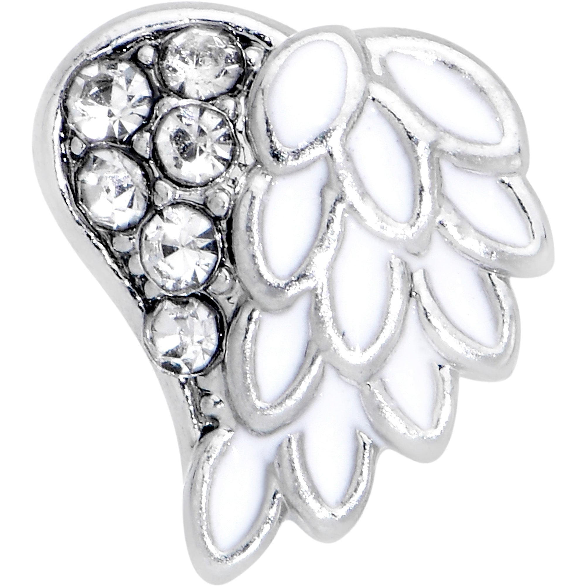 20 Gauge 7mm White Heavenly Heart Angel Wing L Shape Nose Ring
