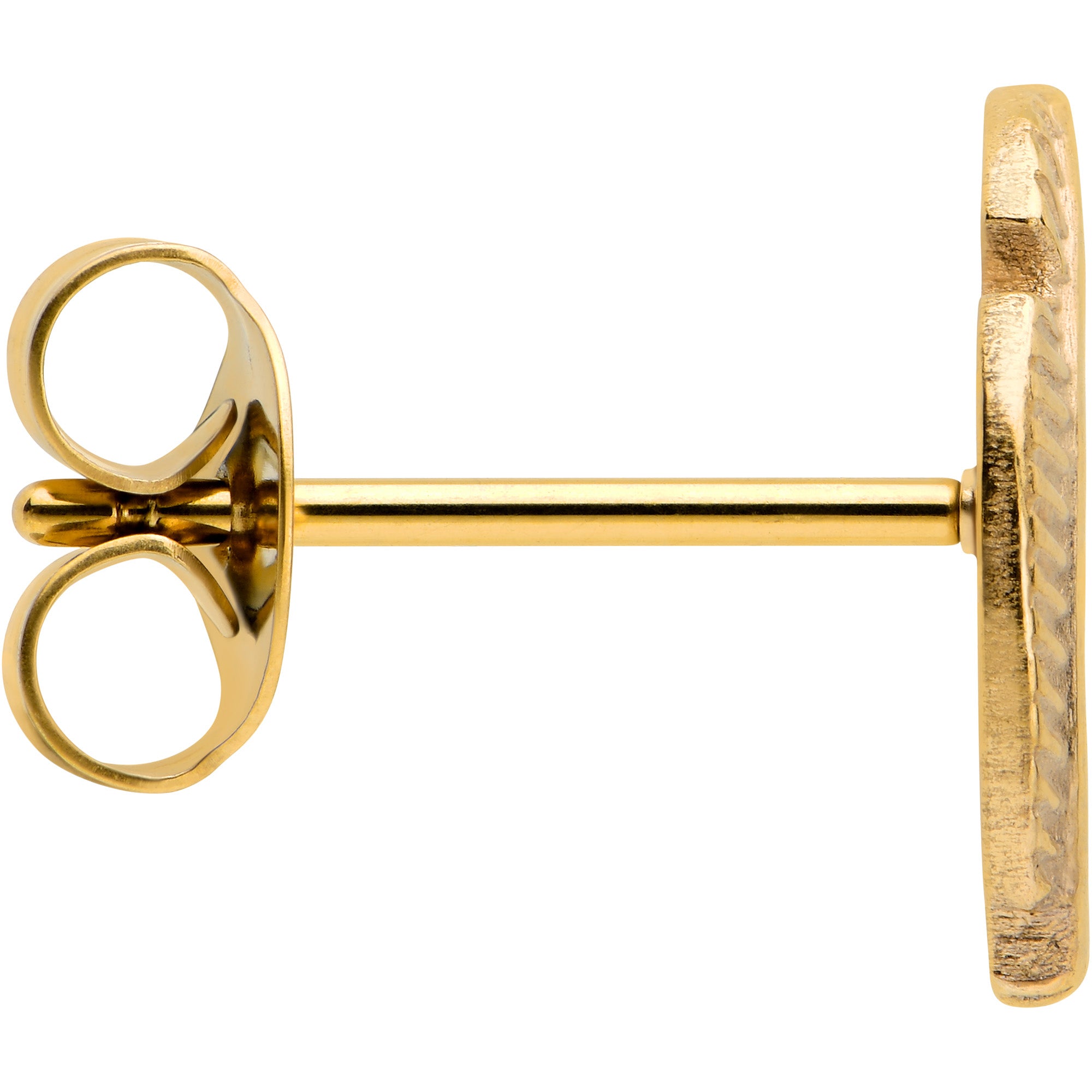 Get a look that will make you want to fly with this pair of 20 gauge stud earrings! These fashion earrings are made with gold tone PVD over ASTM F-136 titanium (solid medical grade titanium) posts and feature elegant feather charms for a classic and elegant appearance. These earrings for women also feature butterfly-style friction backs for a secure fit. Stay stylish without sacrificing quality with this super sweet set of stud earrings! Sold as a set of two.