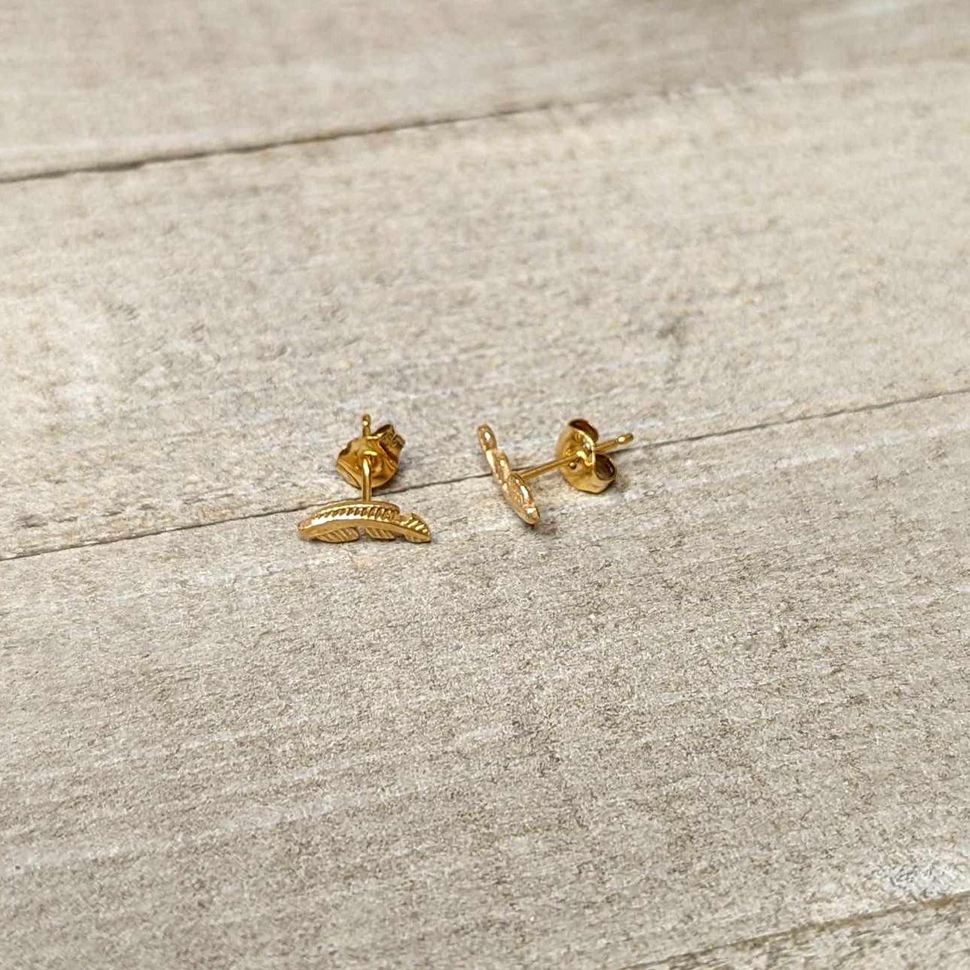 Hypoallergenic jewelry for sensitive skin20 Gauge Gold Tone ASTM F-136 Titanium Fashion Feather Stud Earrings