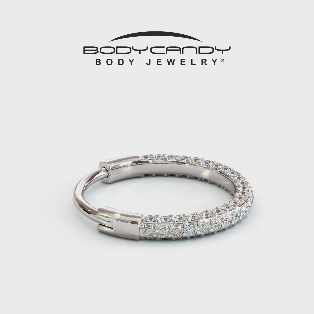 20 Gauge (.8mm) Hinged Closure, Implant Grade Titanium 6AL-4V-ELI ASTM F-136, Cubic Zirconia 3 Paved Sides, Segment Ring, Available in diameter sizes from 7mm to 10 mm