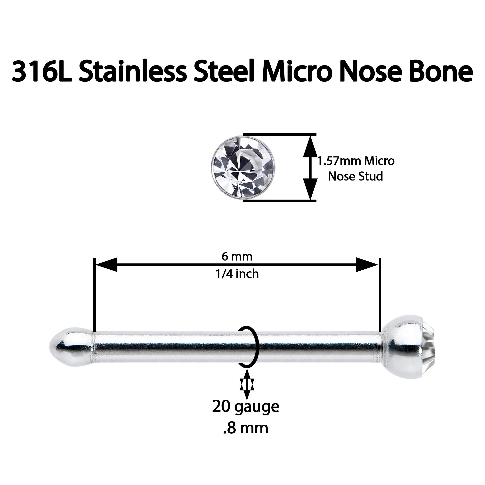 20G Stainless Steel Crystalline Gem Micro Nose Bone
