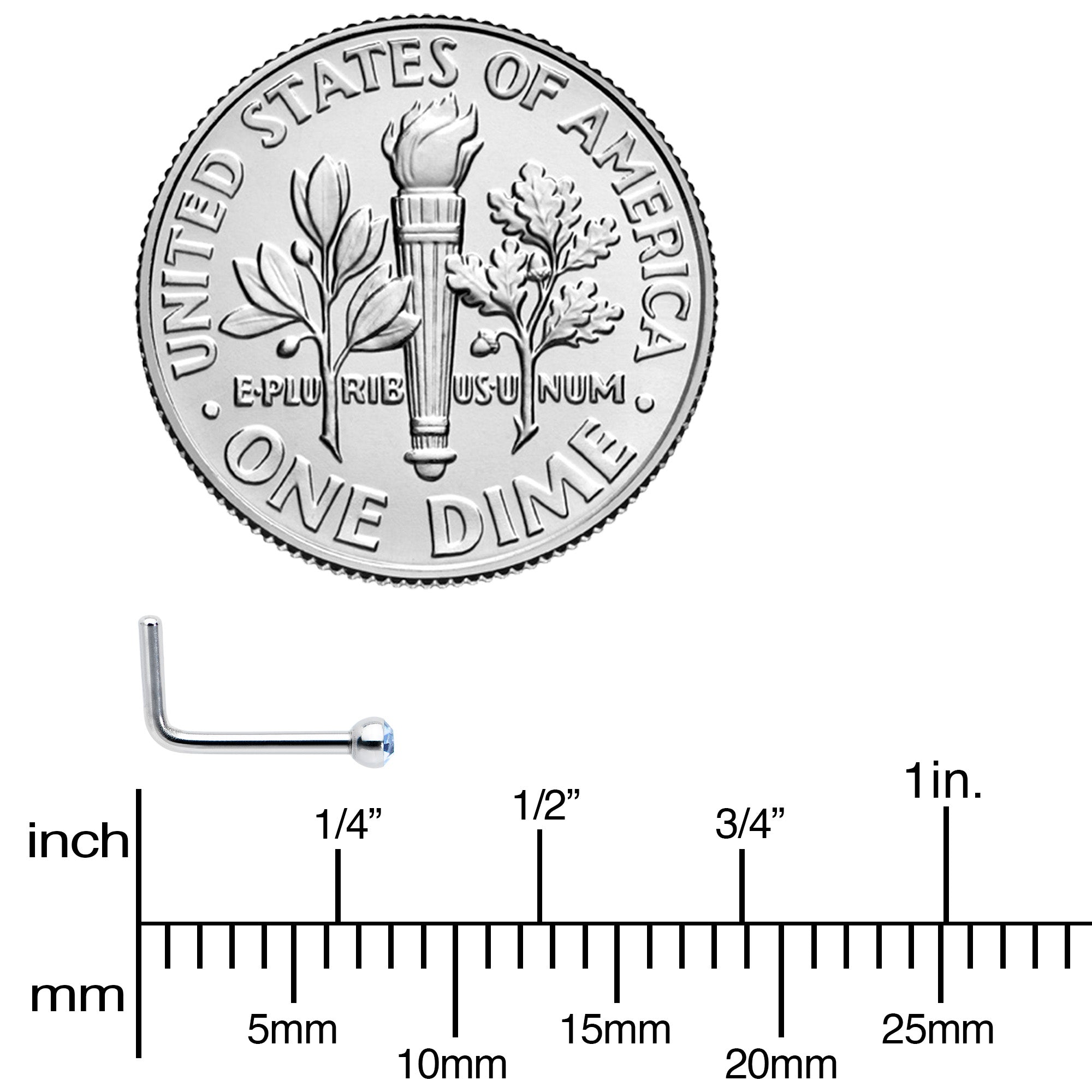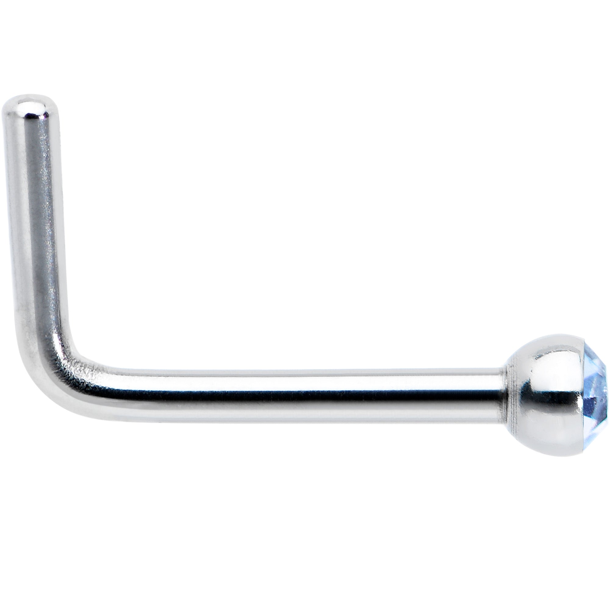 20G Stainless Steel Light Blue Gem Micro Nose Ring L-Shaped