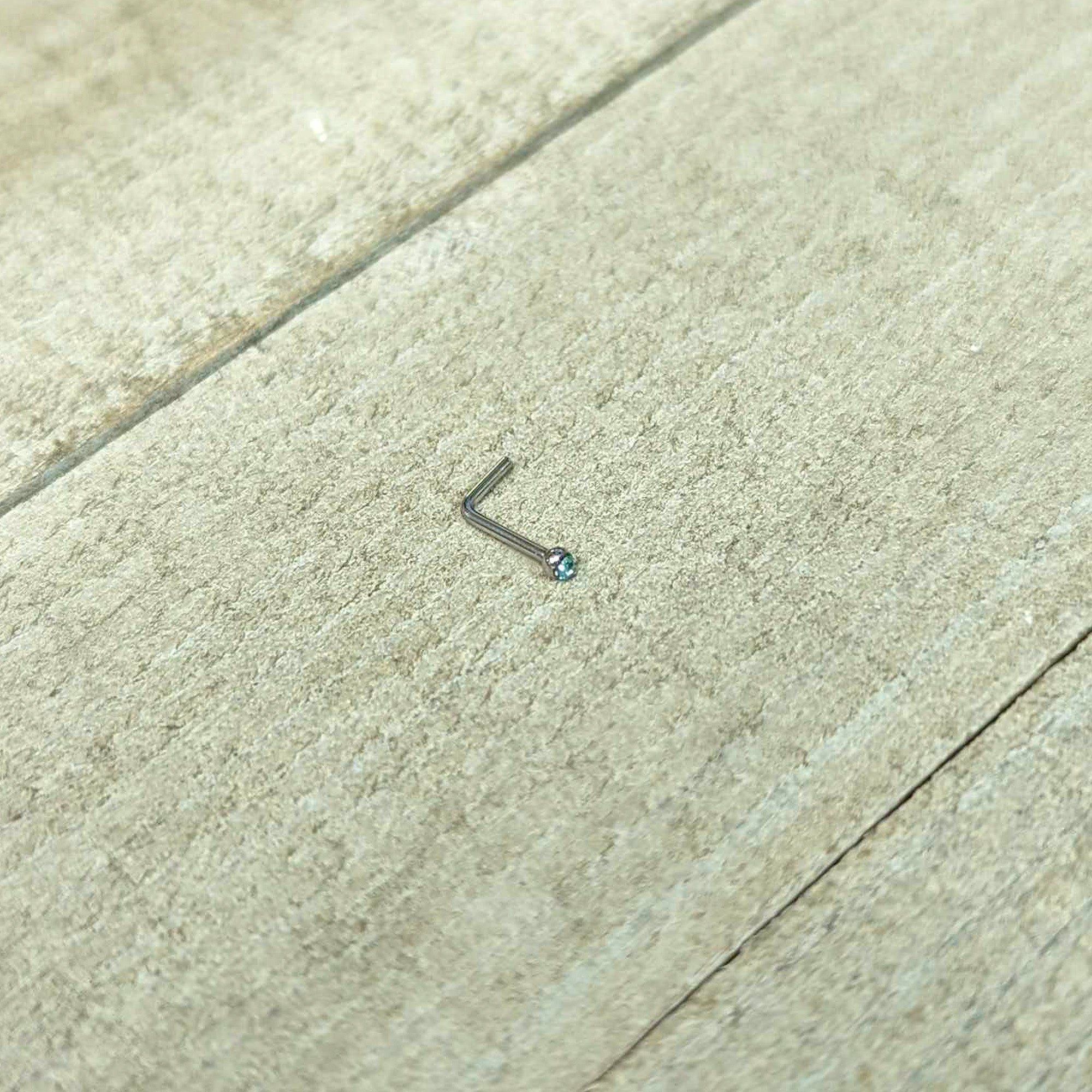 Hypoallergenic jewelry for sensitive skinLight blue gem nose piercing. Micro 1.57mm nose stud piercing with an l-shape. Sexy and discreet micro L-shape nose ring. Series 157 nose studs. Gem nose ring body jewelry made from 316L surgical steel.