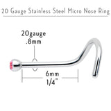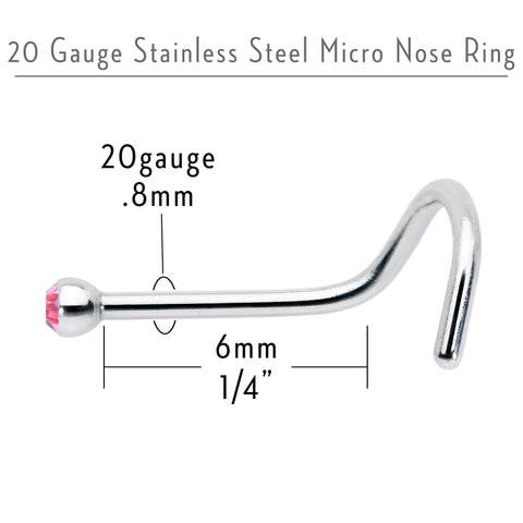 20G Stainless Steel Pink Gem Micro Nose Ring Twister